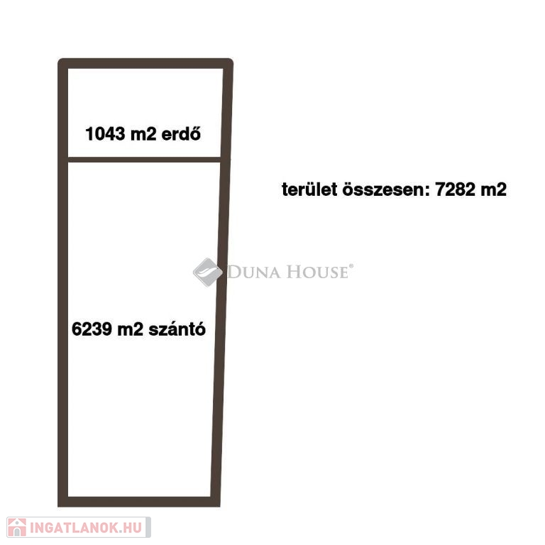 A terület része az 1043 m2 nagyságú erdő, valamint 6239 m2 nagyságú szántó. Telekhatáron villanyvezeték fut, a telken található egy fúrt kút.