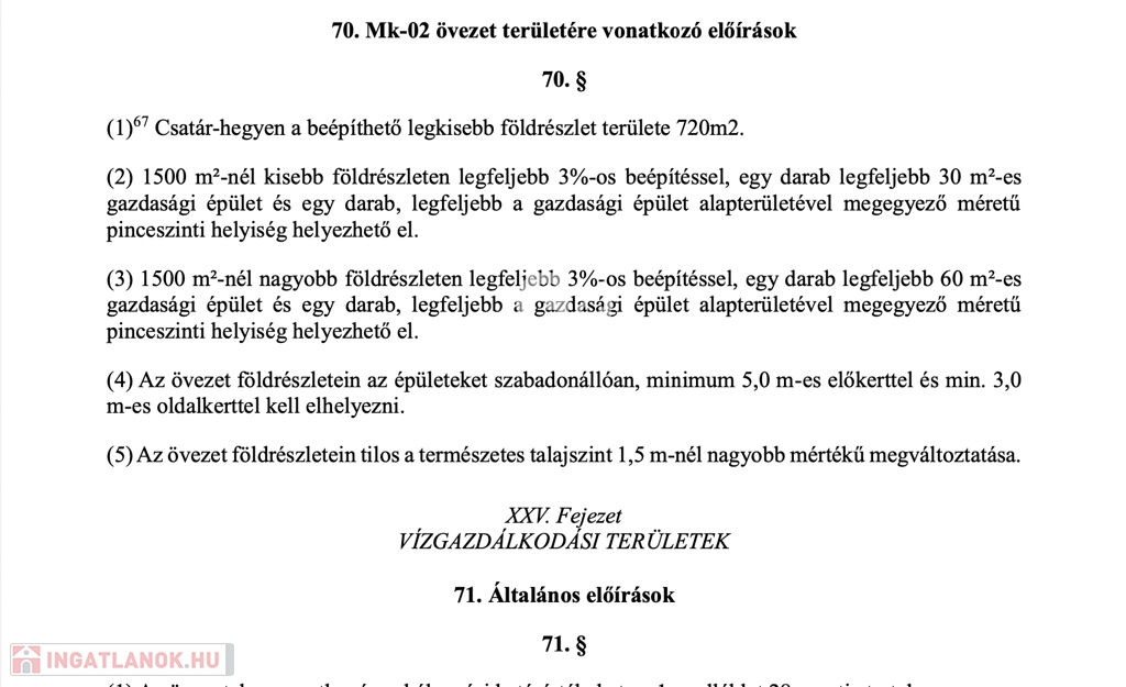 (1) Csatár-hegyen a beépíthető legkisebb földrészlet területe 720m2.