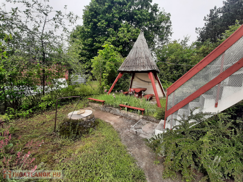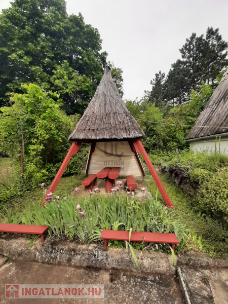A telken a villany bevezetésre került,itt található egy náddal bevont kiülő,kültéri wc,kültéri zuhanyzó,szerszámtárolók,ciszterna.