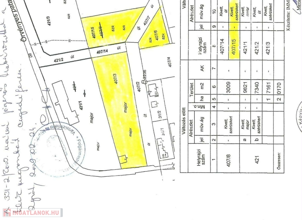 Eladásra kínálok egy összesen 8 797 m²-es belterületi telket, amely 3 külön helyrajzi számon szerepel: