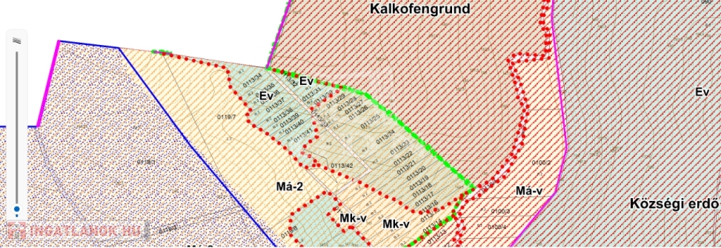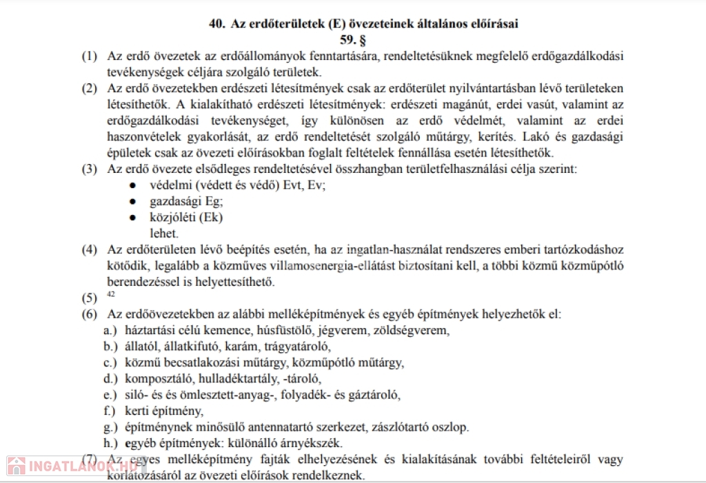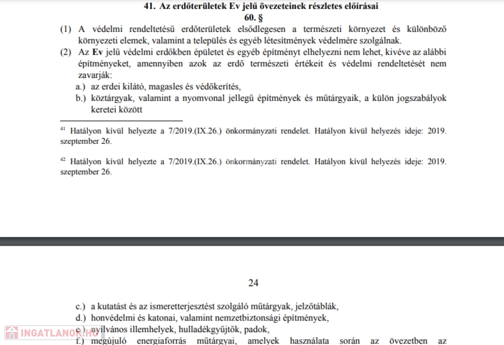 EV besorolású, azaz védelmi rendeltetésű erdőterület, nem beépíthető.
