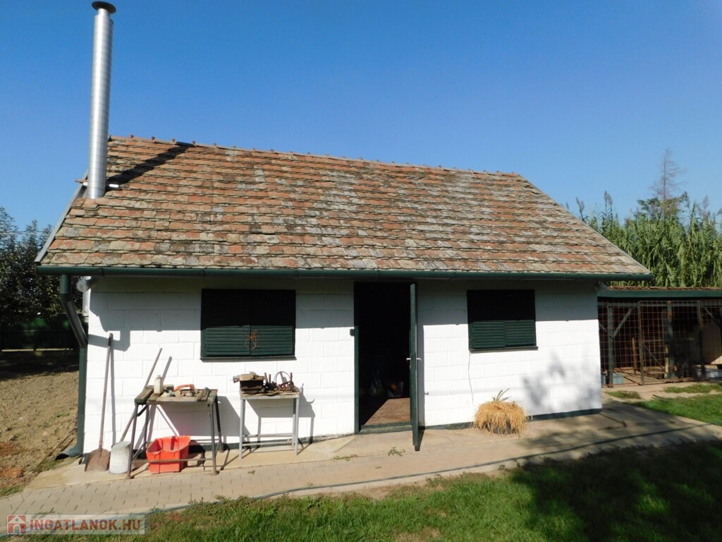 Felépítmény kettő darab található rajta: egy 67 m2 hasznos alapterületű, 13 m2-es fedett terasszal is rendelkező, 2 szobás, összkomfortos ház és egy kb 40 m2 alapterületű melléképület, mely szintén rendelkezik az elérhető közművekkel, így akár egy külön vendégházzá is alakítható.