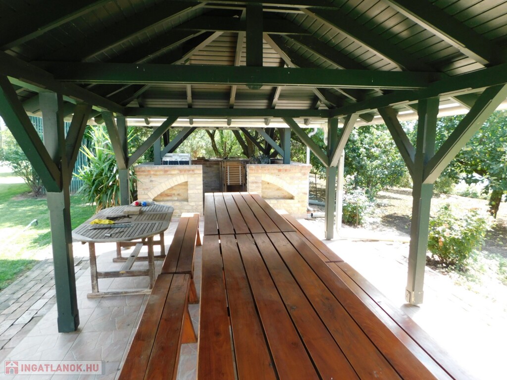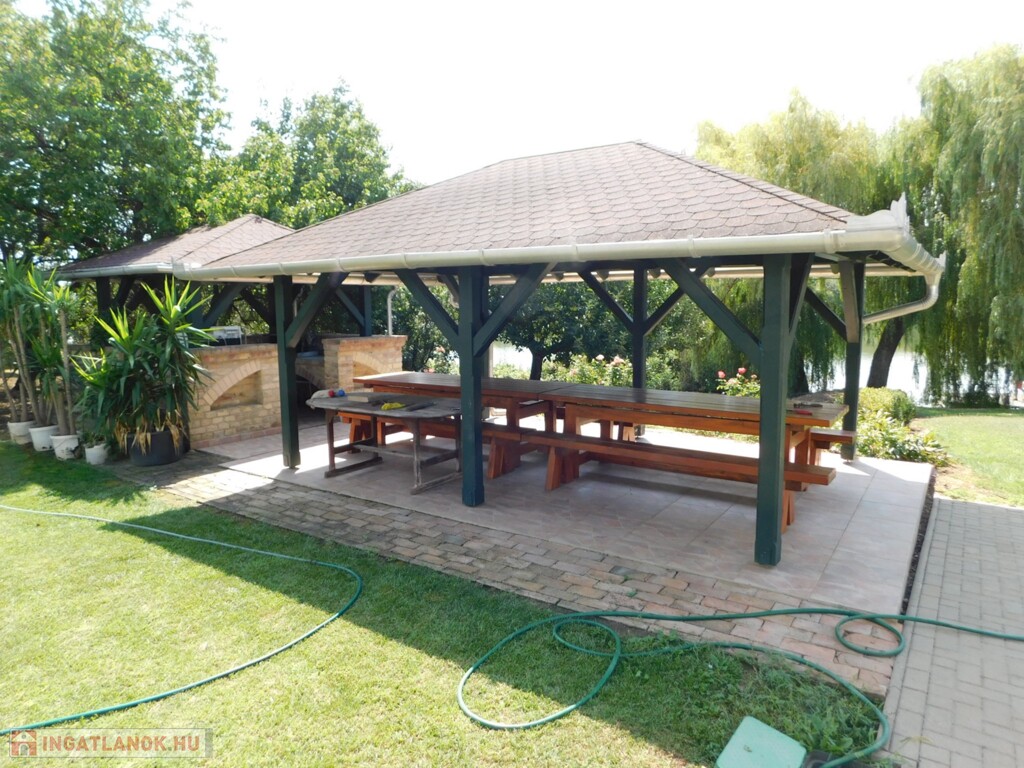 Az ingatlan közel 100 méter saját partszakasszal rendelkezik, ami szinte teljesen egyedülálló a maga nemében! A telek területe teljes egészében körbe kerített (vasbeton alapzattal, komoly, zárt kerítéssel) és a saját partszakaszon egy komplett, horgászásra és fürdésre is alkalmas saját stéggel is rendelkezik. Területe egyébként gyönyörűen parkosított, karban tartott, részben termő gyümölcsfákkal is beültetett.