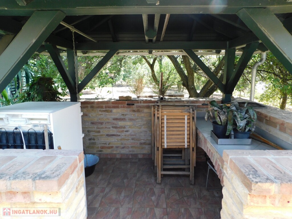 Az udvar központi helyén, a főépület mellett egy nagy méretű fedett terasz is található, mely alatt akár közepes méretű rendezvények, sütögetések is tarthatóak, köszönhetően az épített bográcsozó és grill terasz résznek.