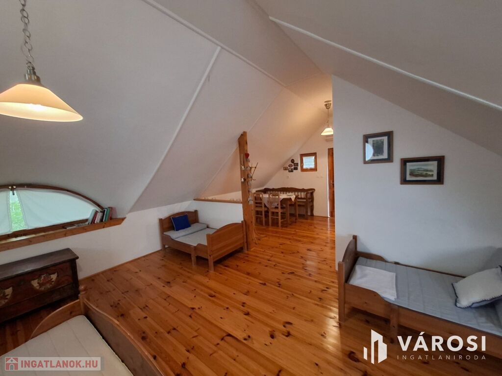 Az emelet külön bejárattal, terasszal és tágas nappali-hálószobával rendelkezik, ahonnan szintén részben balatoni panoráma nyílik.