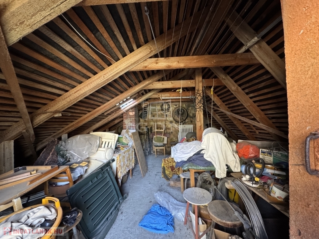 A ház lakrésze 32m2-es. Nappali, hálószoba, konyha, wc, fürdőszoba került kialakításra. Kapcsolódik hozzá egy közel 20m2-es terasz is. A tetőtér igény esetén beépíthető (jelenleg csak kívülről megközelíthető). A tetőszerkezet jó állapotú. A terasz alatt egy 15m2-es pince található