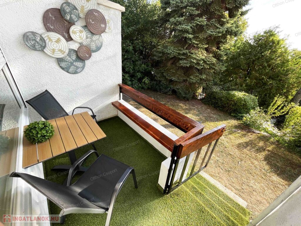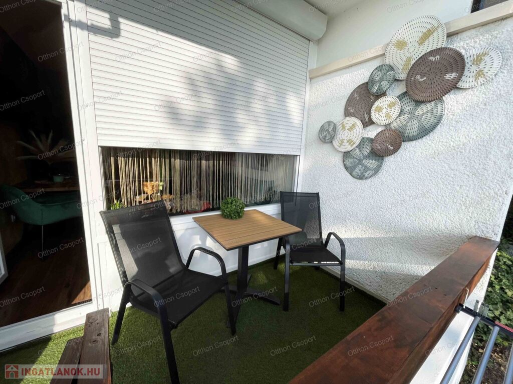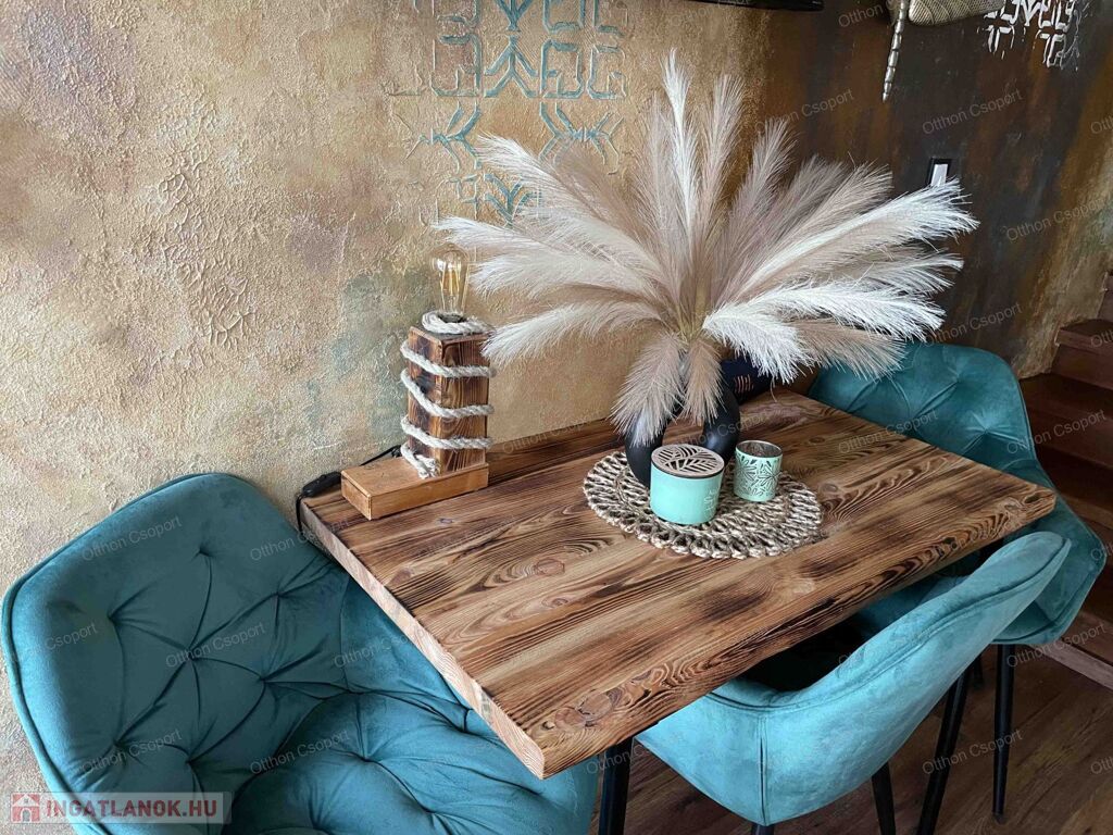 Egyedi tervezésű, prémium design-apartman eladó Balatonalmádi Káptalanfüred részén társasüdülőben, a teraszról balatoni panorámával, gondozott, közös használatú kerttel, napozóval, grillezővel, kiülővel, közúton 600 méterre a hangulatos, családias Káptalanfüred strandtól, gyalog se több néhány percnél. Saját, zárható, árnyékolt kocsibeállóval, parkolóval közvetlenül a ház mellett (amely részét képezi az adásvételnek). Műszakilag tökéletesen felújított és tervező által megdizájnolt állapotban, tehát teljesen új elektromos és vízhálózattal, teljes felületén elektromos fűtőszálas padlófűtéssel, szobatermosztáttal. Dél-keleti tájolású, szépen árnyékolt, földszinti nyaraló, a teraszról kijárással a gyönyörű kertre, melyet kertész gondoz. Alapterülete 25,3 m2, egy nappali/háló kihúzható kanapéval, + egy vendég-fotelágy, 3 személy részére kényelmes alvási lehetőséggel, ill. 3 személyre szabott ebédlőasztallal, tágas gardróbbal. Teljeskörűen berendezett, új konyha rész új háztartási gépekkel, önálló fürdőszoba tusolóval, wc-vel, 50 literes bojlerrel. Terasz 5 m2, 2+2 személy számára kiülési lehetőséggel, balatoni panorámával. A legtöbb bútor, ill. berendezés egyedileg tervezve és gyártva borovi fenyőből a lehető legoptimálisabb helykihasználással. Csodás panoráma nyílik bentről is a nappaliból a Balatonra a hatalmas üvegfelületen keresztül. Az árban foglaltatik az összes berendezési tárgy és bútor okostévével, hűtőszekrénnyel, mosógéppel, dísztárgyakkal, mindennel együtt. Kiadásra, szállásoltásra, turizmusra remek megtérülésű befektetésként, avagy saját használatra pihenésre, töltődésre, kikapcsolódásra egyaránt kitűnő lehetőség. Ára: 49 M Ft. 06209730443 Igény esetén örömmel megmutatom személyesen, hívjon bátran.