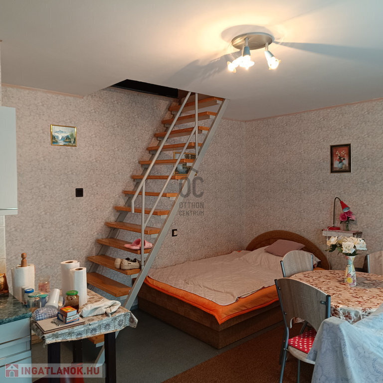 -a hátsó udvari ház: 30 m2 nagyságú: konyha-étkező-nappali, mosdó-WC került kialakításra, felső szinten hálószobával