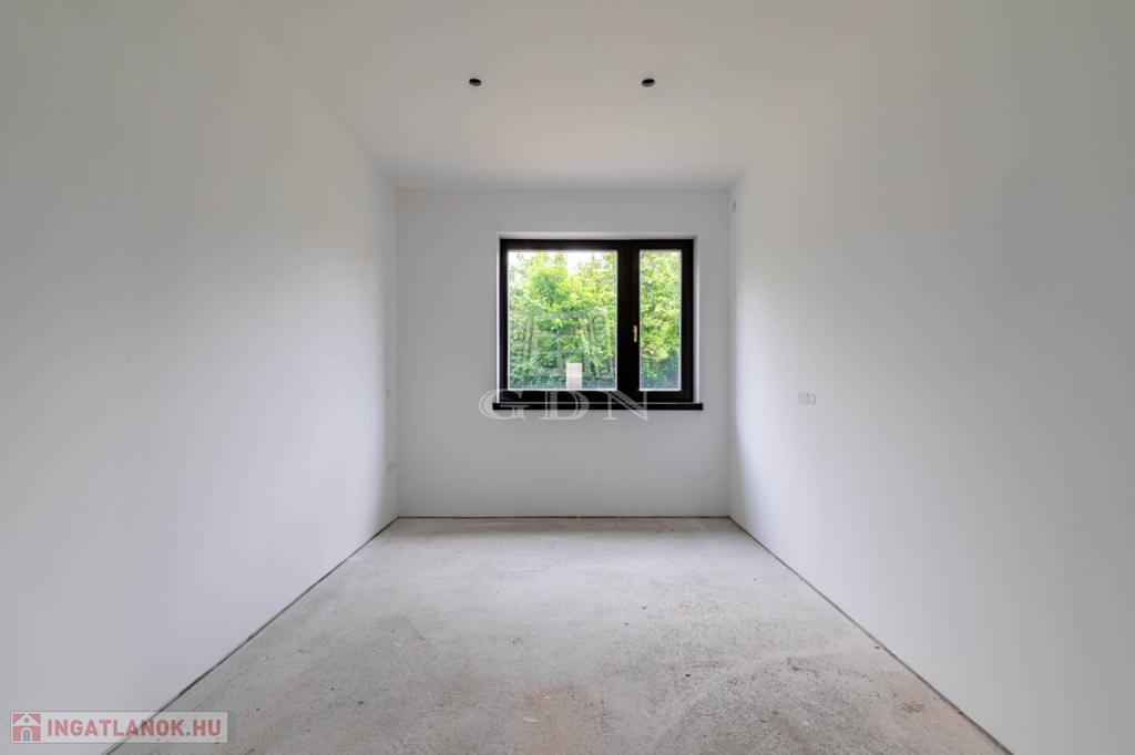 A 112 nm-es nettó alapterületű emeleten 1 nappali (kandalló előkészítéssel), 3 szoba, 2 fürdőszoba, valamint 101 nm-es részben fedett és pergolás körpanorámás terasszal.