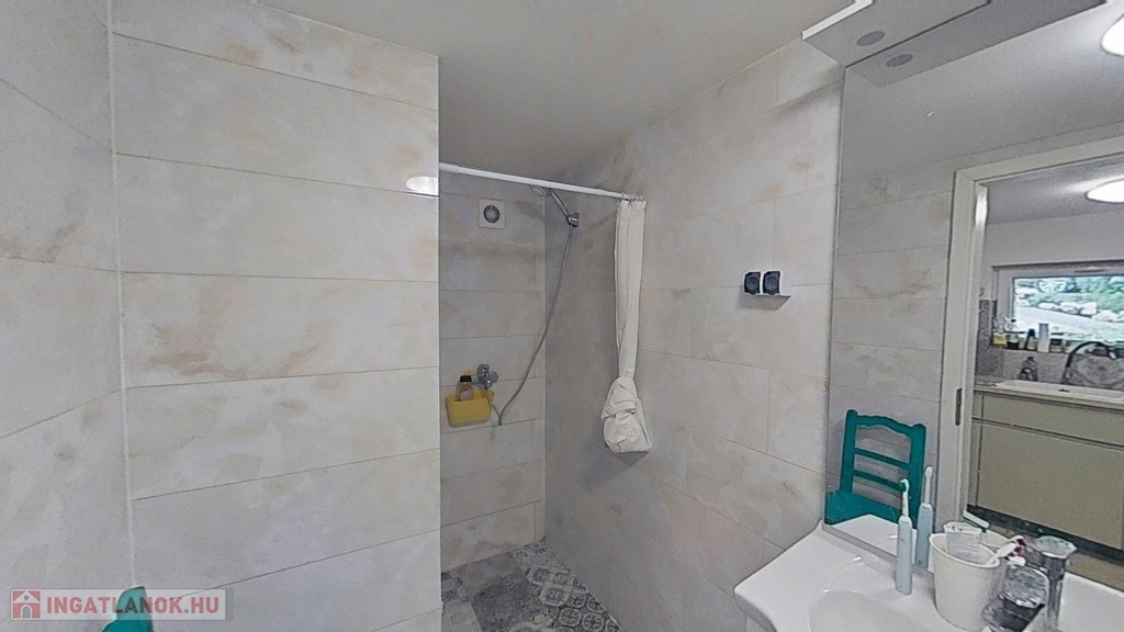 A D-i tájolású, 3 szintes, 106 m2-es, 3 szobás, tégla építésű ikerház félhez 1088 m2-es, enyhén lejtős, körbekerített telek tartozik. Gyümölcsfával, fügefákkal, örökzöld bokrokkal részben beültetett kertje tovább növeli a hely intimitását, valamint a nagysága lehetőséget teremt akár tiny house vagy jurta elhelyezésére.