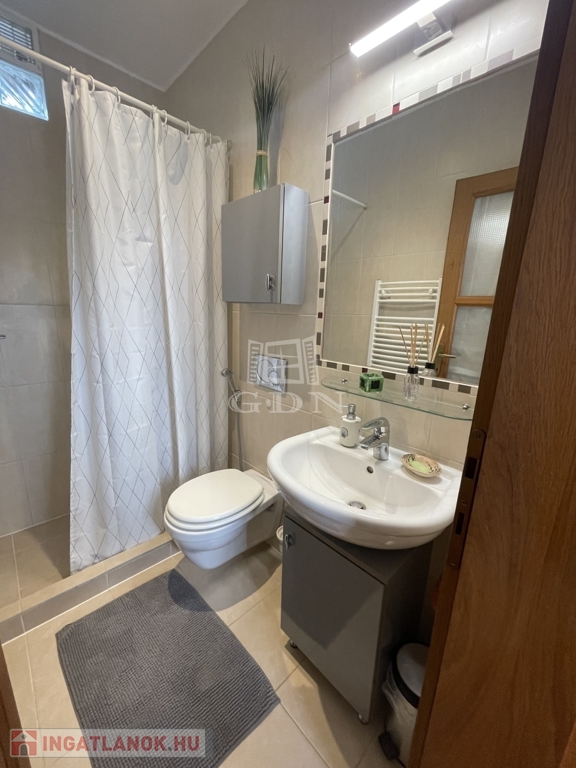 Emelet: 2 hálószoba (20 és 10,2 m²) split klímákkal, sarokkádas fürdő (4,1 m²), külön WC (1,6 m²), tároló