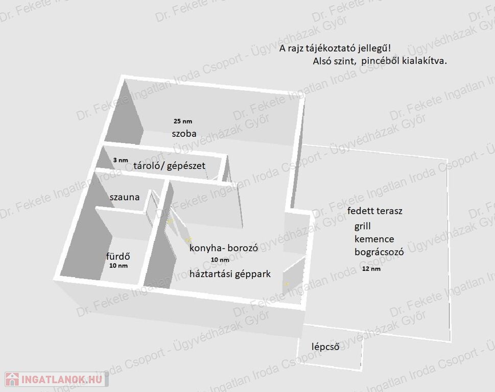 Alsó szint (48 m²):