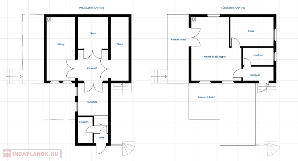 - A ház 40 m2 alapterületű, amely előtérből, konyha-nappaliból, hálószobából és fürdőszoba-WC-ből áll. Alatta pince található, amely szintén 40 m2-es, illetve a tetőtér is beépíthető.