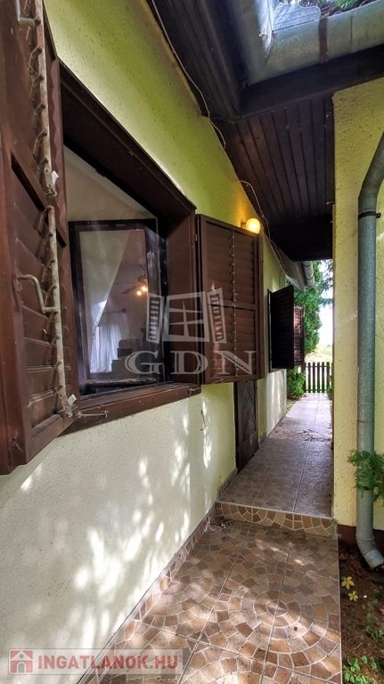 A téglából épült 59 m2-es házat örökzöldek veszik körül bájos, romantikus környezetet teremtve. A szép, rendezett kertben a tuják mellett számos gyümölcsfát is találunk. A nagy, fedett terasz összeköti a kertet és a házat, kiváló helyszín családi, baráti összejövetelkhez. Innen nyílik az egy légterű nappali-konyha-étkező, ahonnan nyílik a fürdőszoba és innen lehet felmenni a két fenti hálóhoz.