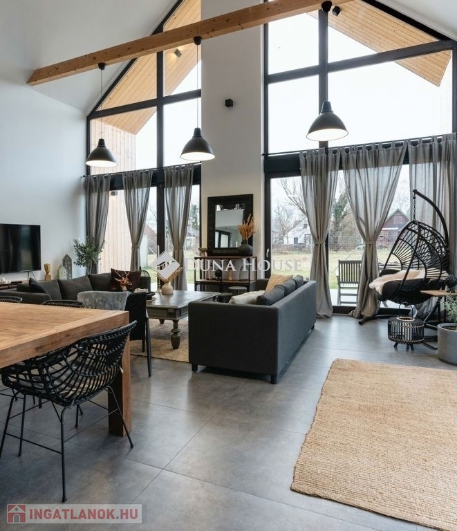 ELADÓ egy napfényes, ÚJONNAN ÉPÜLT, 154 nm-es családi ház/nyaraló a Balaton déli partján, amely kivételes lehetőséget kínál mindazok számára, akik modern, jól felszerelt OTTHONra vágynak, emellett értékelik a MINŐSÉGet.A kétszintes ingatlan elosztását tekintve átgondolt; világos terek jellemzik: a tágas, galériás amerikai konyha - nappali - étkezővel biztosítja a társasági élet központját, valamint a mindkét szinten megtalálható 2-2 hálószoba és 1-1 fürdőszoba wc-vel lehetővé teszik a praktikus és kényelmes életvitelt.A mai kor igényeinek megfelelően az ingatlan padlófűtése egyszerűen, távvezérelve is irányítható, így a lakók saját igényeik szerint szabályozhatják az otthonuk hőmérsékletét, így garantálva az otthon melegét és komfortját a hideg hónapokban.A galériára telepített klíma kiválóan temperálja a tágas belső teret a nyári forróságban.Az épület rendkívül gondos tervezése és kivitelezése magas minőségben, prémium anyagokból és modern technológiákkal történt, így garantálva a kényelmet és az exkluzív életérzést.A kertkapcsolatos nappali közvetlen hozzáférést biztosít a külső terekhez: a tágas teraszokhoz, az öntözőrendszerrel ellátott udvarhoz és a grillezőhöz.Az ingatlan főbb jellemzői:- Galériás nappali- 4 hálószoba- 2 fürdőszoba-wc- Egyedi nyílászárók- Elektromos redőnyök- Prémim burkolatok és szaniterek- Bosch beépített gépek- Padlófűtés- Klíma- 3-fázisú villamos hálózat, H-tarifa- 2 nagy terasz- Grillező- Fúrt kútAz épület szerkezete:- Porotherm 30 X-therm Rapid Dryfix tégla falazat + 5 cm. hőszigetelő vakolat + ragasztott gipszkarton- Tetőn 25 cm hőszigetelésA ház csendes, nyugodt utcában található. A vízpart -szabadstrand- egy rövid sétára (400 méterre) található.Ez az egyedileg tervezett és kivitelezett ingatlan ideális választás családok, párok otthonának vagy nyaralójának;továbbá ajánjuk BEFEKTETÉSI CÉLRA, hiszen a számos és egyre népszerűbb Balaton-parti programokra, rendezvényekre ellátogatók számára téli-nyári szálláshelyül, lány- legénybúcsú- vagy más partyk helyszínül szolgálhat.Bővebb információért, teljes műszaki tartalomért, személyes megtekintésért kérem keressen elérhetőségeimen!