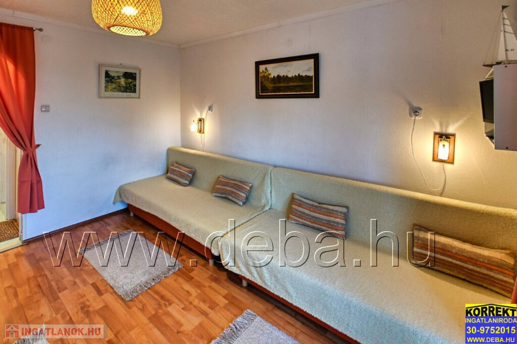 Balatonlellén, a Balaton déli partján, közvetlen vízparti, 72 lakásos társasüdülőben eladó, egy második emeleten lévő 24 m²-es, 2013-ban felújított üdülőházas besorolású apartman. Az apartman tavasztól őszig használható, mert fűtéssel nem rendelkezik, és a hideg időjárás beállta előtt ősszel víztelenítik.