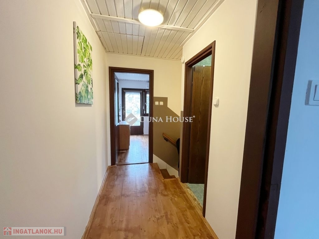 A földszinten konyha-étkező, szoba, fürdőszoba, a tetőtérben 2 szoba, közlekedő és fürdőszoba található.