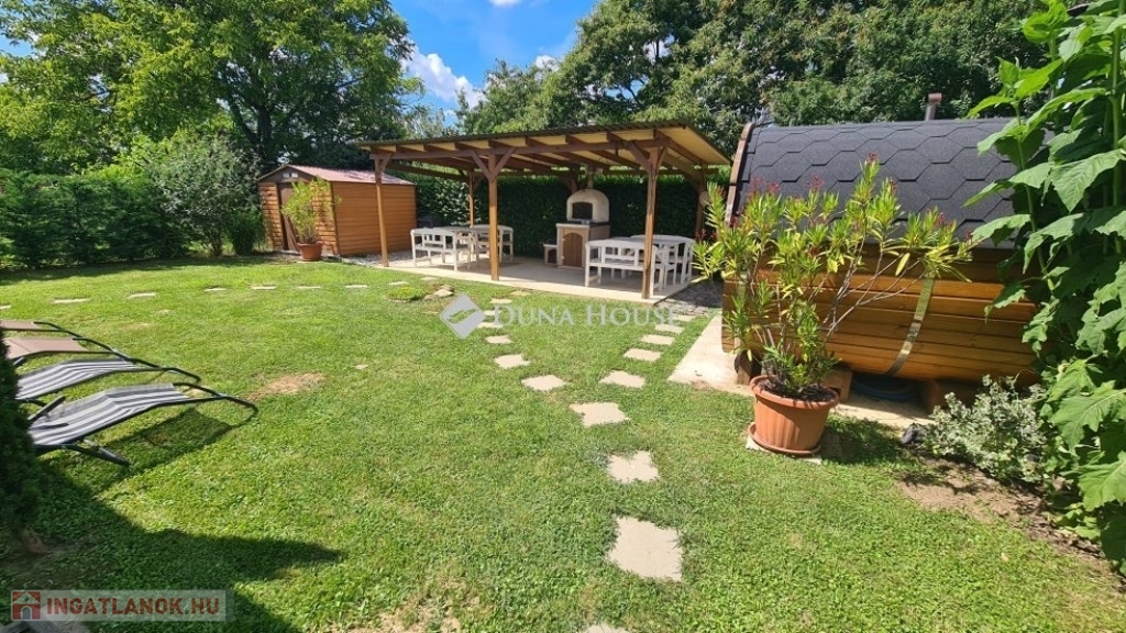 Az ingatlan értékét növeli az udvaron egy 20 nm-es kerti kiülő, kemence, fatüzelésű finn szauna és dézsa is.