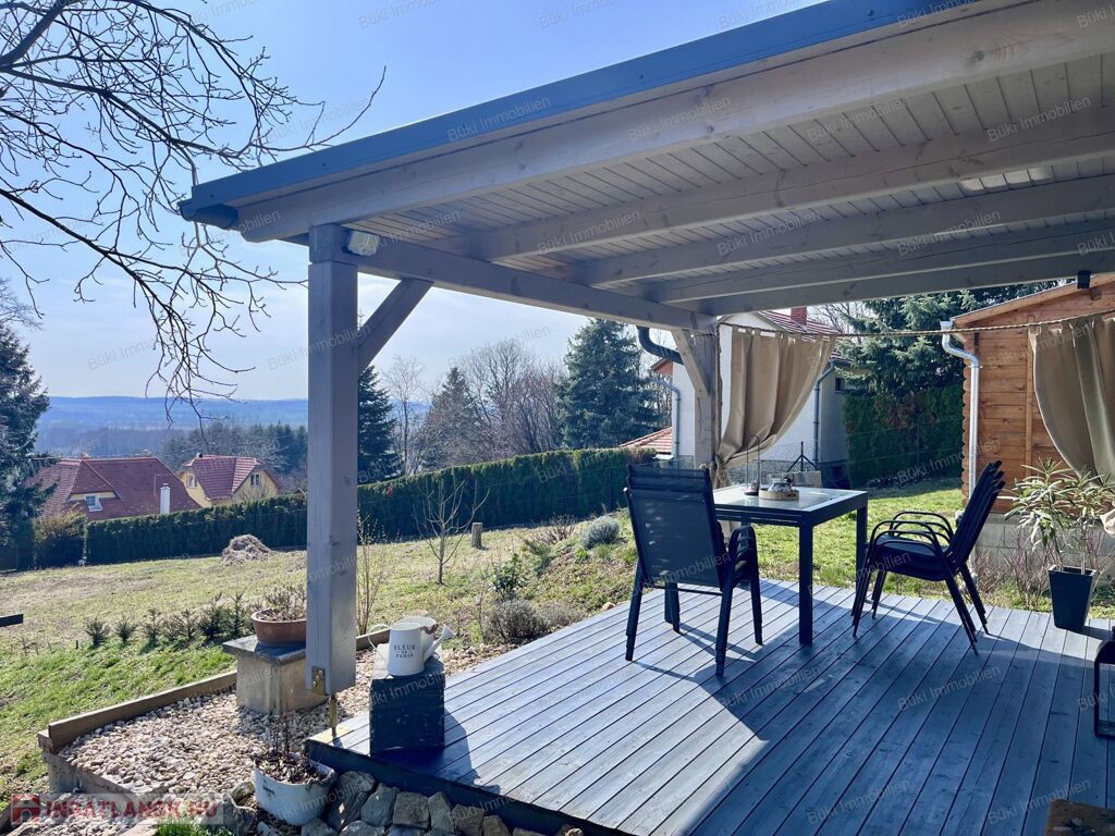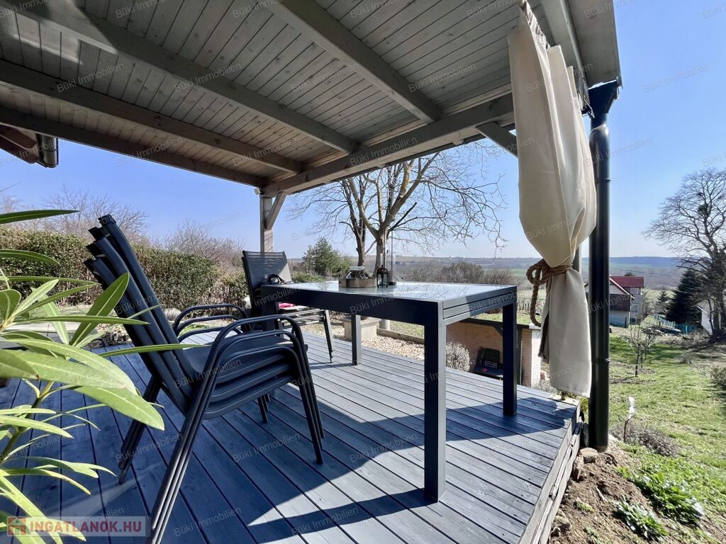 Bozsok egyik legcsendesebb, legszebb részén vált eladóvá egy 2021-ben épült, minden részletében igényes, újszerű nyaraló. A 859 m²-es, gondozott területen fekvő ingatlanból zavartalan kilátás nyílik a környező dombokra, biztosítva a tökéletes intimitást.