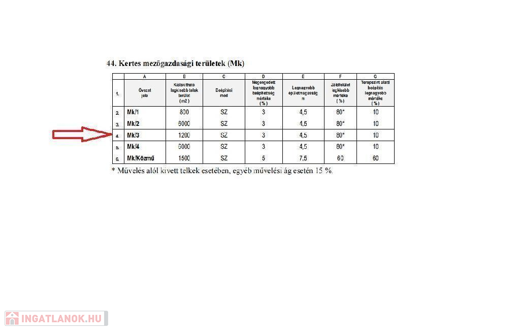 Az ingatlan építészeti besorolása szerint Mk/3 besorolású, a tulajdonlapon művelés alól kivett terület, lakóház és üdülő.