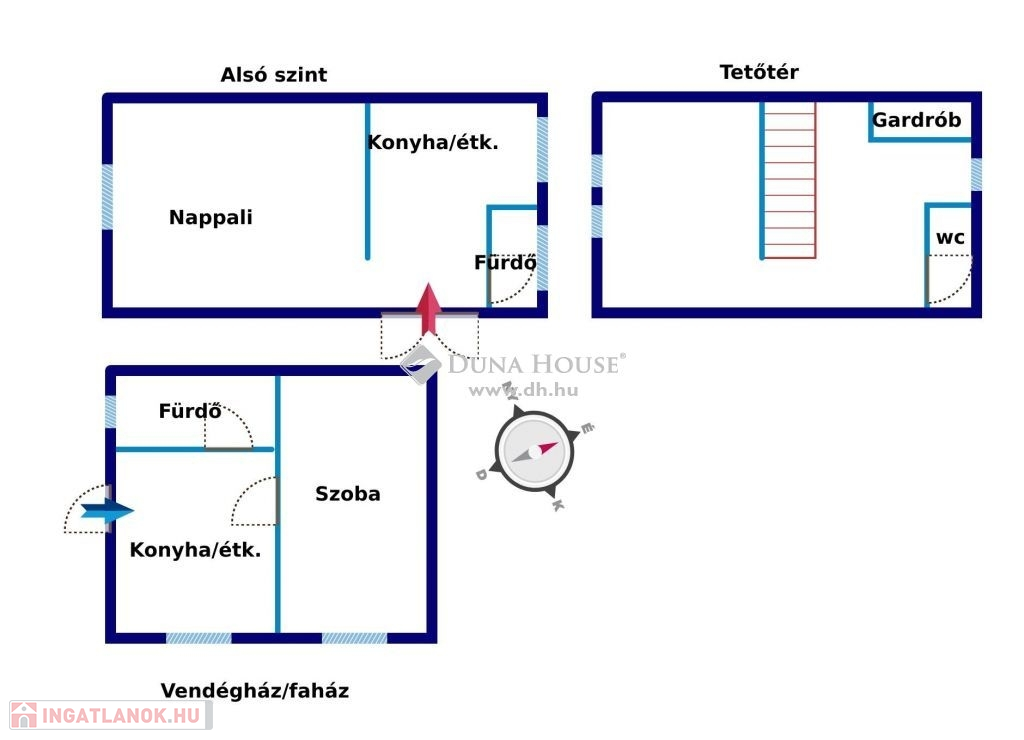 A téglaházban nappali/ konyha és a manzárdban egylégterő háló, míg a vendégházban szoba/konyha/fürdőszoba került kialakításra. Így akár két család is élvezheti a vidék nyugalmát és a melegviz jotékony és kellemes hatását.