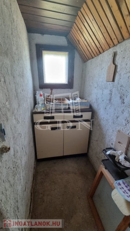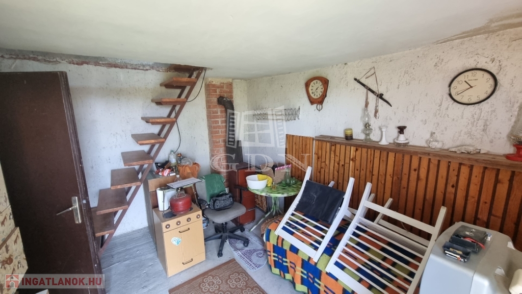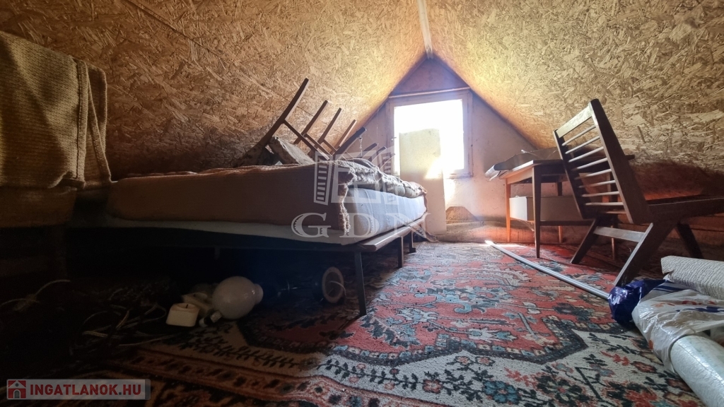 A ház alápincézett, fűthető (kályha van) tetőteres kis terasszal. Wc van a házban. Utcafrontja 23m, beépíthetősége: 10% Az utcában állandó lakosok élnek. Telken számos gyümölcsfa található, határai jól láthatóak.