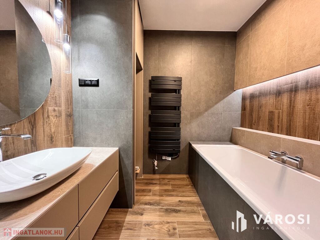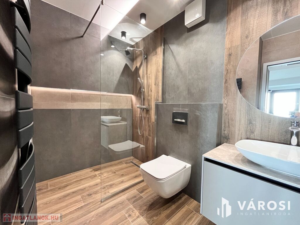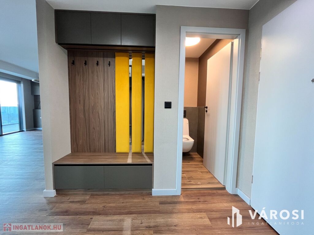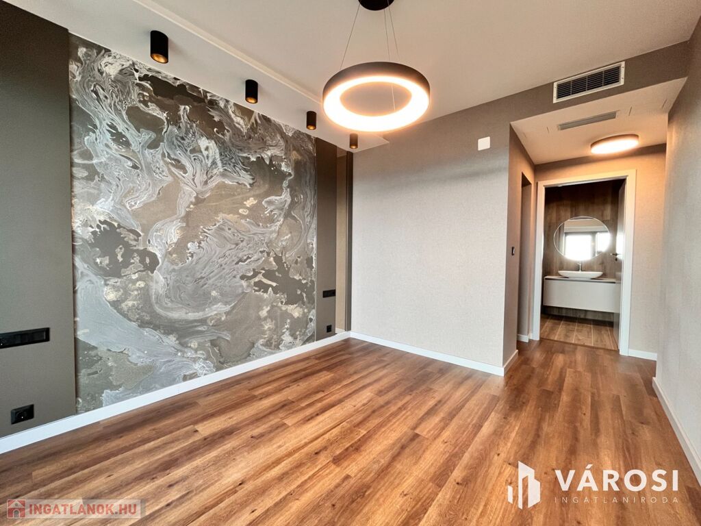Debrecen egyik legfrekventáltabb sugárútján, az ikonikus Egyetem Tower társasház legfelső lakószintjén (8. emelet) eladó egy új építésű, 91 m²-es, prémium kategóriás luxuslakás.