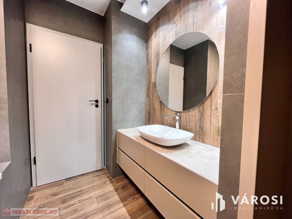 A konyha teljesen gépesített, a beépített berendezések a legmagasabb minőséget képviselik. A lakás belső tereit designer tervezte, minden beépített anyag és felület prémium kategóriás.