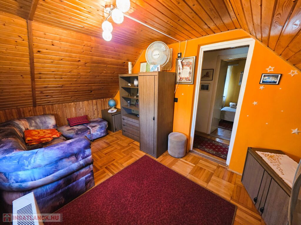 Dömsöd csendes, zártkerti részén kínáljuk megvételre ezt a 46 m²-es, jó szerkezetű, kétszintes nyaralót 681 m²-es telken. Az 1994-ben épült ingatlan beton alapra, téglából készült, cseréppel fedett, stabil beton födémmel, valamint cserélt műanyag ablakokkal, amelyek redőnnyel felszereltek. Fűtést kandalló biztosítja, melegvíz-ellátás villanybojlerrel, hűtés-fűtés klímával.