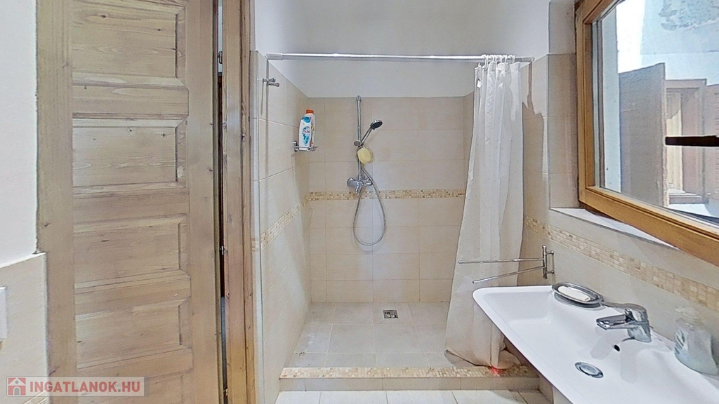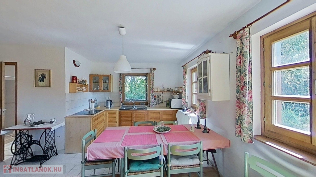A Balatontól 6 km-re, a belterülettől néhány 100 méterre fekvő, minden évszakban könnyedén megközelíthető, 1994-ben épült, D-i tájolású, 2 szintes épület alsó szintje 78 m2, felső szintje 30 m2, mely tartalmaz két teljes értékű hálószobát, 2 fürdőszobát, valamint egy tágas előtér-nappali-konyhát.