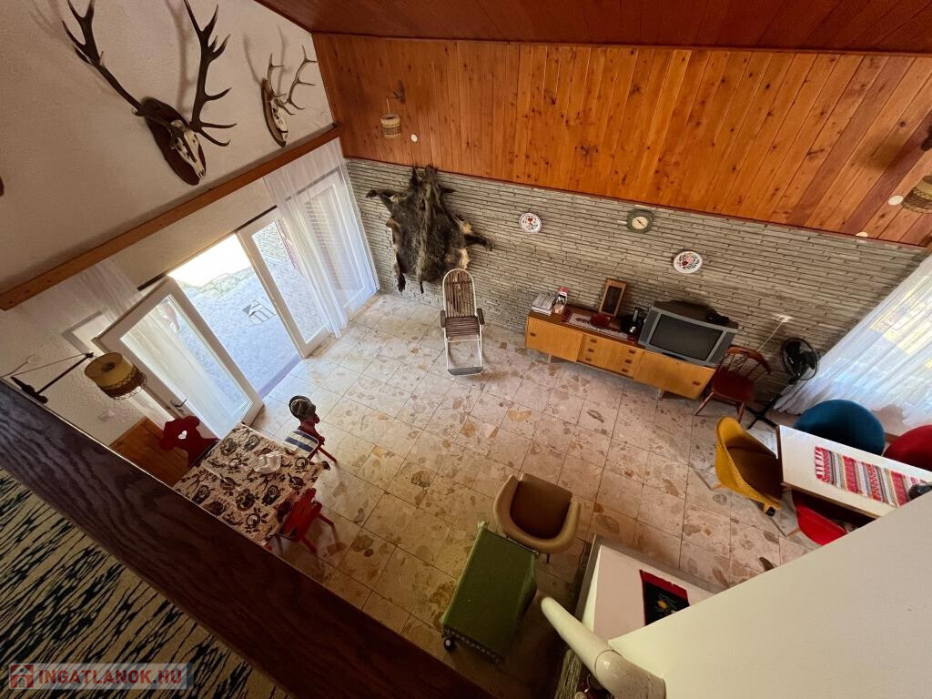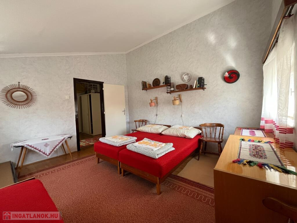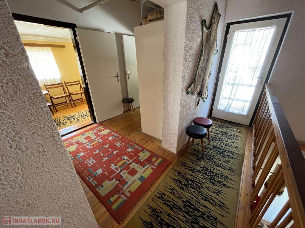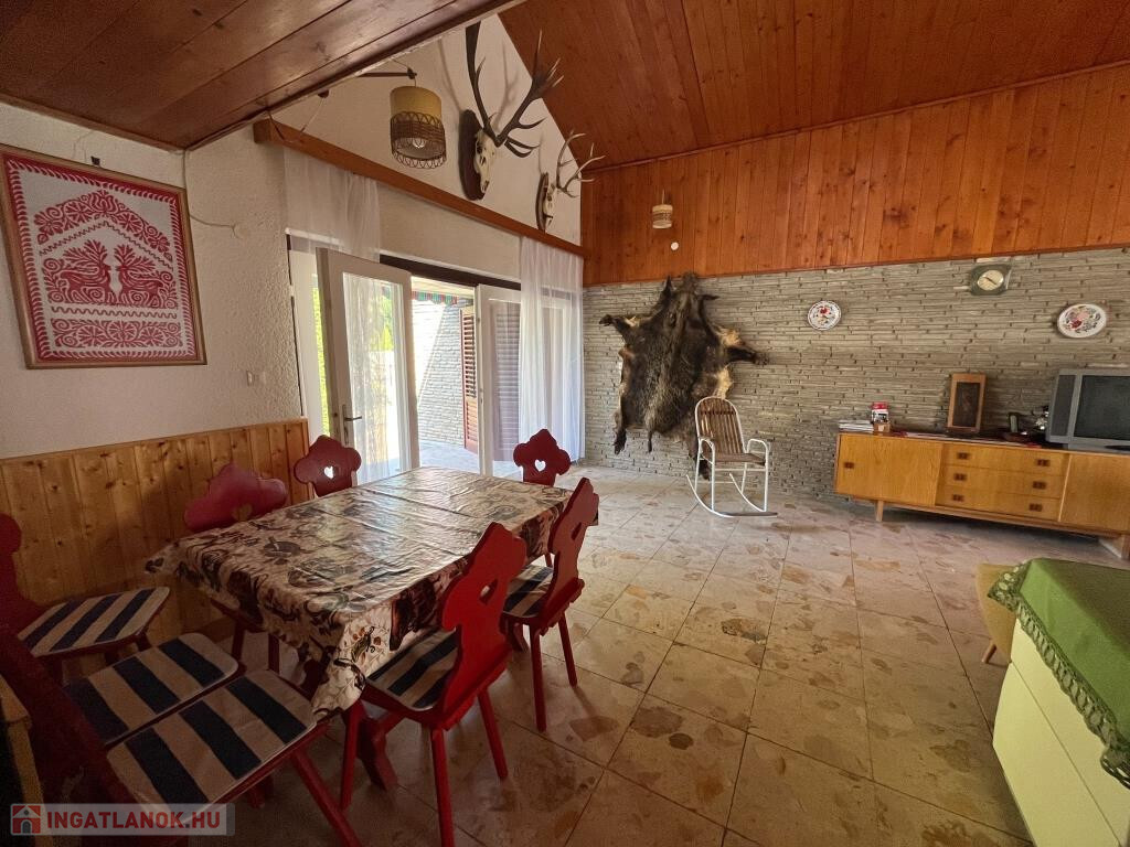 Fonyódliget egyik csendes, partközeli utcájában, a Thököly utcában kínáljuk megvételre ezt a kétszintes, 110 m2-es, jó elosztású családi nyaralót. Impozáns nappalijában harmonikusan van jelen a természetes fa- és a kőburkolat, a tágas, világos belső tér igazán barátságos, nagyobb társaságnak is kényelmes helyet ad. Terasz is csatlakozik hozzá. A földszinten ki van még alakítva egy háló, a zuhanyzós fürdő és a konyha; minden helyiség egy kis előtérből nyílik, ahová bejárati ajtó is vezet. Az emeletre a nappaliból megy fel a lépcső, itt szintén a közlekedőből nyílik két szoba, a WC, valamint egy erkély. A ház jó állapotú, a kerttel együtt szépen karbantartott. A közművek közül a gáz kivételéven minden bevezetésre került. A telek teljesen sík, 459 m2, füves, parkos. Kifejezetten jó helyen fekszik a nyaraló, a Balaton kb. 200 m, vagyis 3-4 perc sétával elérhető a strand. A környék rendezett, az utca csendes, nyugodt, a főút távolabb fut.