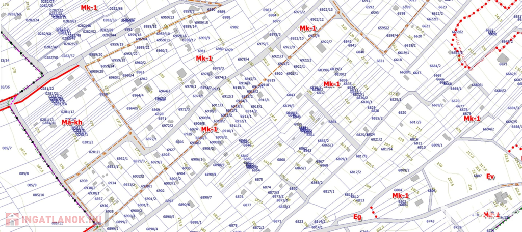 Övezeti besorolása mk-1 mely 5%-os beépíthetőséggel számolva 50nm-es alapterületű ingatlan építését engedélyezi tetőtér beépítésével.