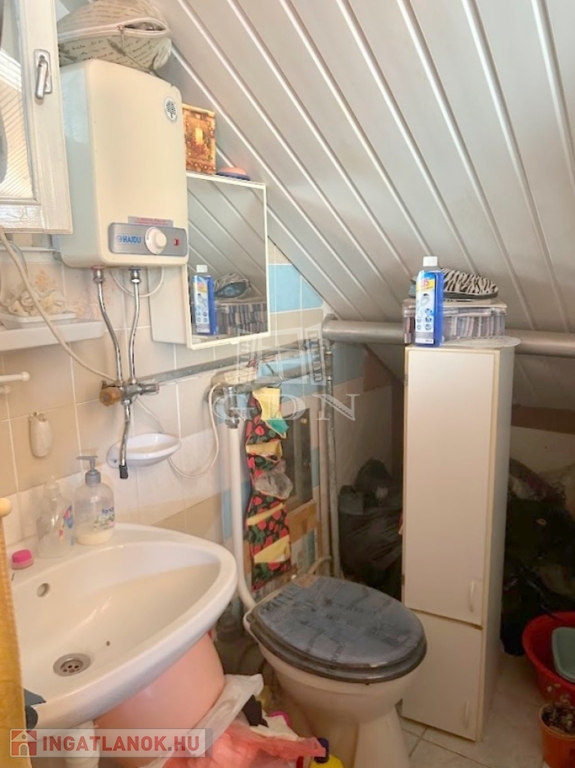 4804. Gárdonyban, 1 km távolságra a tóparttól, csendes kertvárosi utcában, 1975-ben épült favázas könnyűszerkezetes "Éva faház" ikernyaraló, a földszinten tégla bővítményi résszel, gázkonvektor fűtéssel, kis melléképülettel, fedett terasszal, 233 m2-es telekrésszel, közepes-felújítandó állapotban eladó. Részleges felújítások történtek az elmúlt 10 évben: fémlemez héjazat, részleges homlokzati hőszigetelés, külső nyílászárók részleges cseréje. Irányár: 39,99 Mft