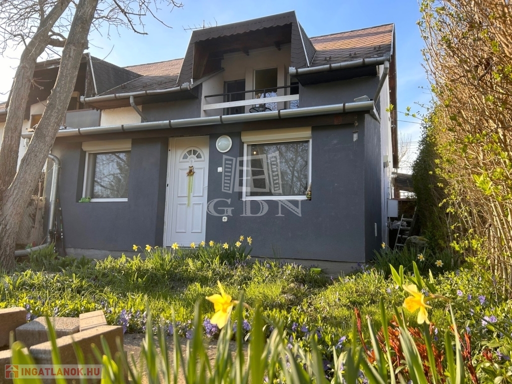 4681. Agárdon, pár perc sétára a tóparttól, csendes utcában található, 80-as években épült, 2018-ban felújított, egész évben lakható, gázcirkó fűtéses, hőszigetelt, műanyag nyílászárókkal rendelkező, tetőtér beépítéses, 59 m2 lakóterületű, nappali + 2 hálószobás ikernyaraló, inverteres klímával, gondozott 185 m2-es kertrésszel eladó. Ár: 51,9 Mft