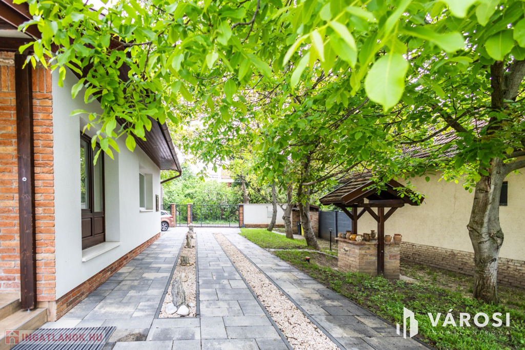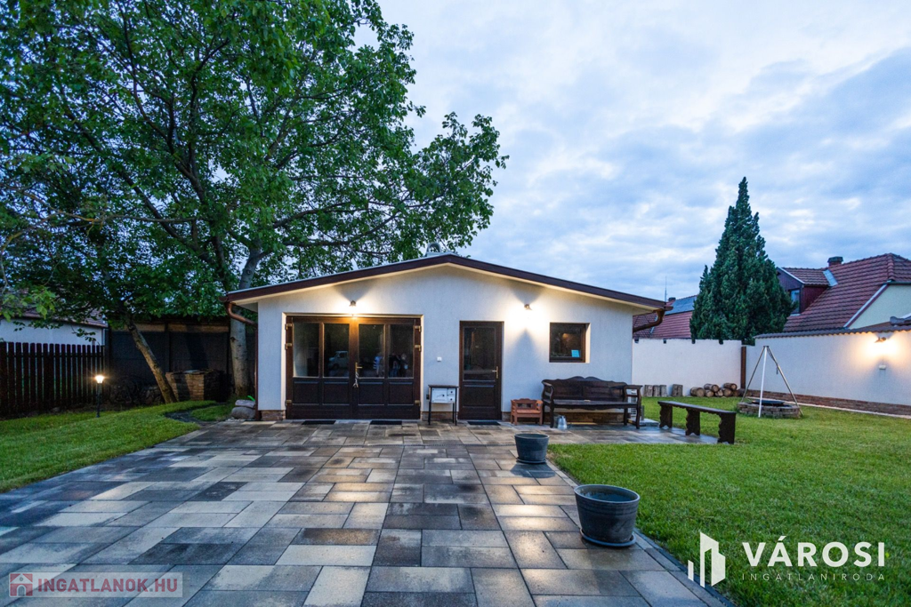 A telek alapterülete 920 nm, melyben számos diófa mellett egy bográcsozó is helyet kapott. A kertkapcsolatot egy 33 nm alapterületű fedett terasz biztosítja, mely tökéletes helyszíne a reggeli vagy akár a vacsora elfogyasztásának.