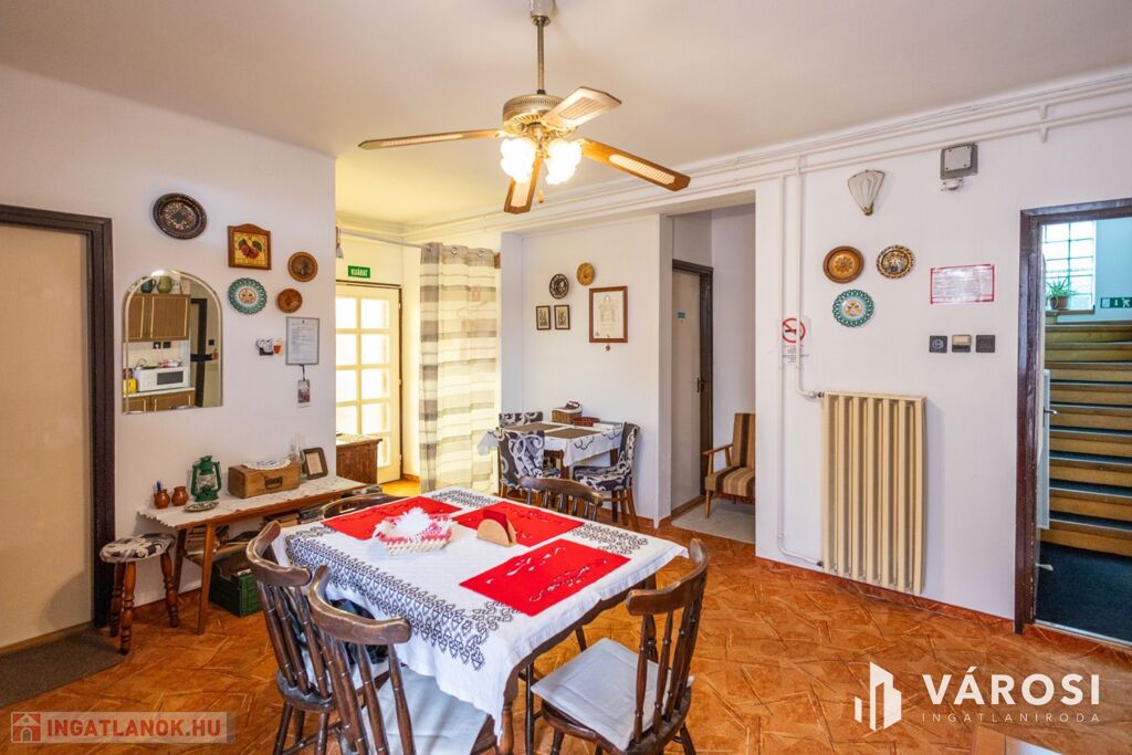 Gyulán, kiemelt övezetben, a Várfürdő főbejáratától mindössze 200 méterre eladóvá vált egy nagyon jó elosztású, 480 nm alapterületű panzió. Az ingatlanban 12 különálló szoba található, melyek akár 30 fő befogadására is alkalmasak, a szobákhoz 1-2 egységenként külön fürdőszoba és WC került kialakításra. Az ingatlan két épületrészből áll, melyek külön bejárattal két utcáról is megközelíthetőek. Az épületek 3 szintesek, minden szinten közösségi társalgó lett kialakítva, így tökéletes lehet akár nagyobb családok, baráti társaságok számára is. Az emeleti szobákból gyönyörű kilátás nyílik a Gyulai várra és a várkertre.