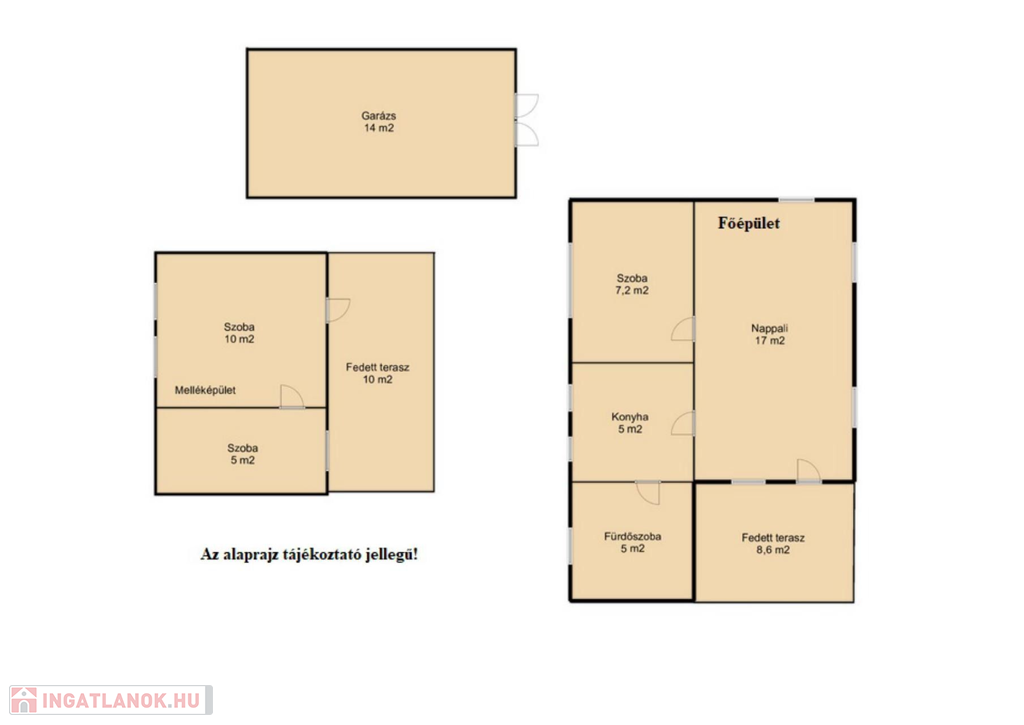 A garázs (szintén könnyű szerkezetes): 14 m2.
