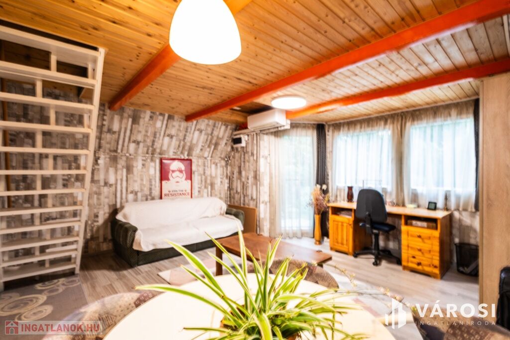 Megvételre kínálunk egy kiváló állapotú, teljesen felújított nyaralót Gyula városerdői részén. Az ingatlan lakótere 43 m², amely egy kényelmes nappaliból, amerikai konyhából és egy modern fürdőszobából áll, a tetőtér beépítésnek köszönhetően pedig az az emeleti részen két különnyíló félszoba került kialakításra.