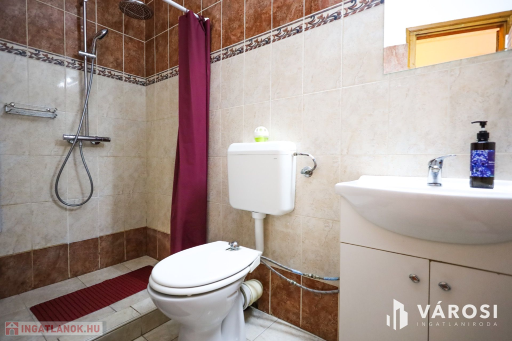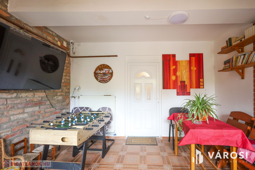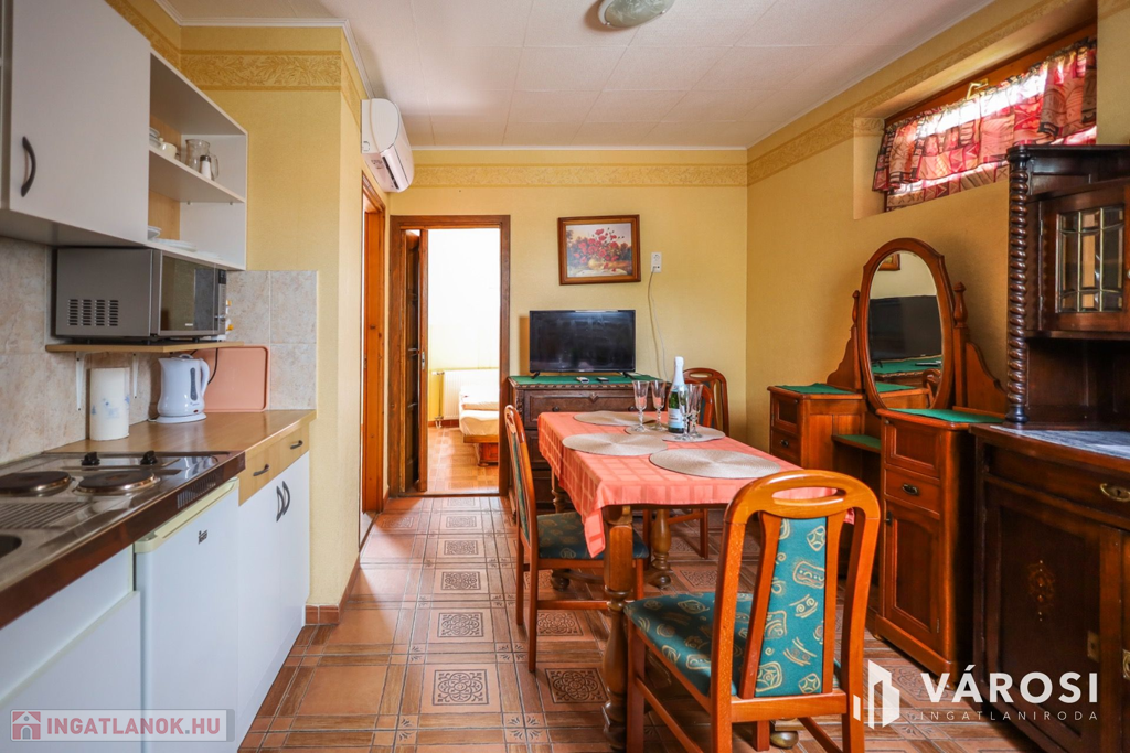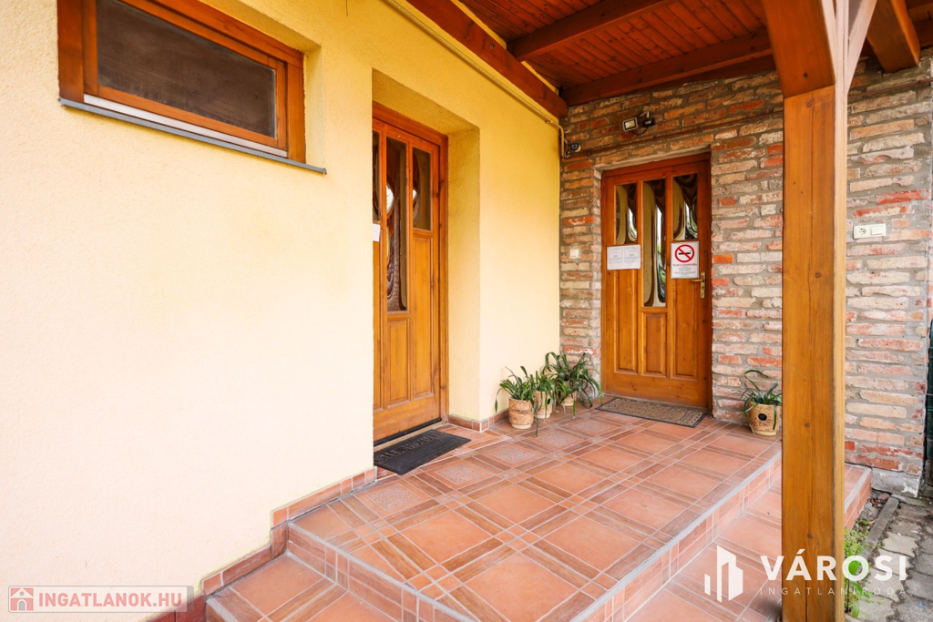 Az ingatlan másik része vályogtégla falazatú, melynek aláfalazása, szigetelése és betonozása 2004-ben szintén megtörtént. Ebben az épületrészben található egy jelenleg is bérbe adott üzlethelyiség, az iroda, egy nagy méretű tároló, illetve a háztartási helyiség, valamint az infra szauna. Ebben az épületrészben igény szerint egy teljes lakórész is kialakítható az apartmanház üzemeltetői számára, hiszen fürdőszobával és konyhával is felszerelt.