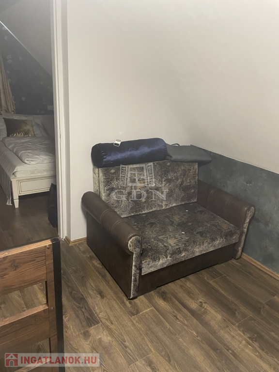 Emelet: hálószoba (1 franciaágy + 1 egyszemélyes ágy), fürdőszoba, valamint az előtérben egy kihúzható vendégágy,
