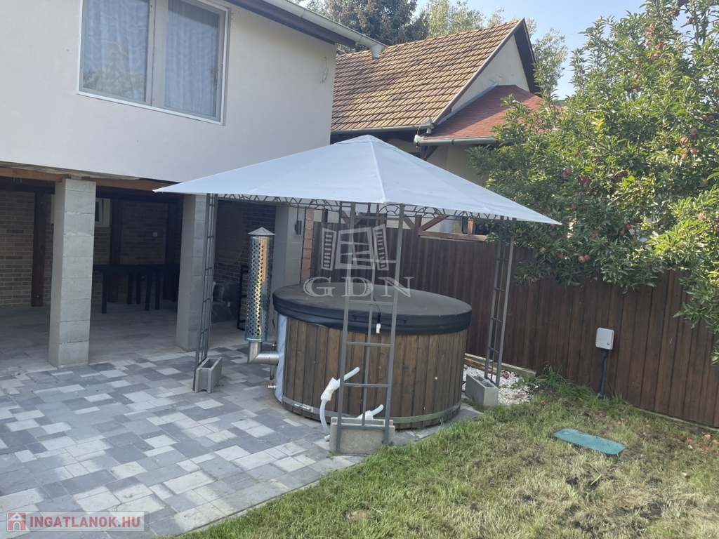 Az ingatlan különlegessége egy 2 éves, fa tüzelésű akril belsejű finn dézsa, pezsgőfürdő funkcióval, hidromasszázzsal és fényterápiával, amely a pince előtti részen kapott helyet – tökéletes esti kikapcsolódáshoz.