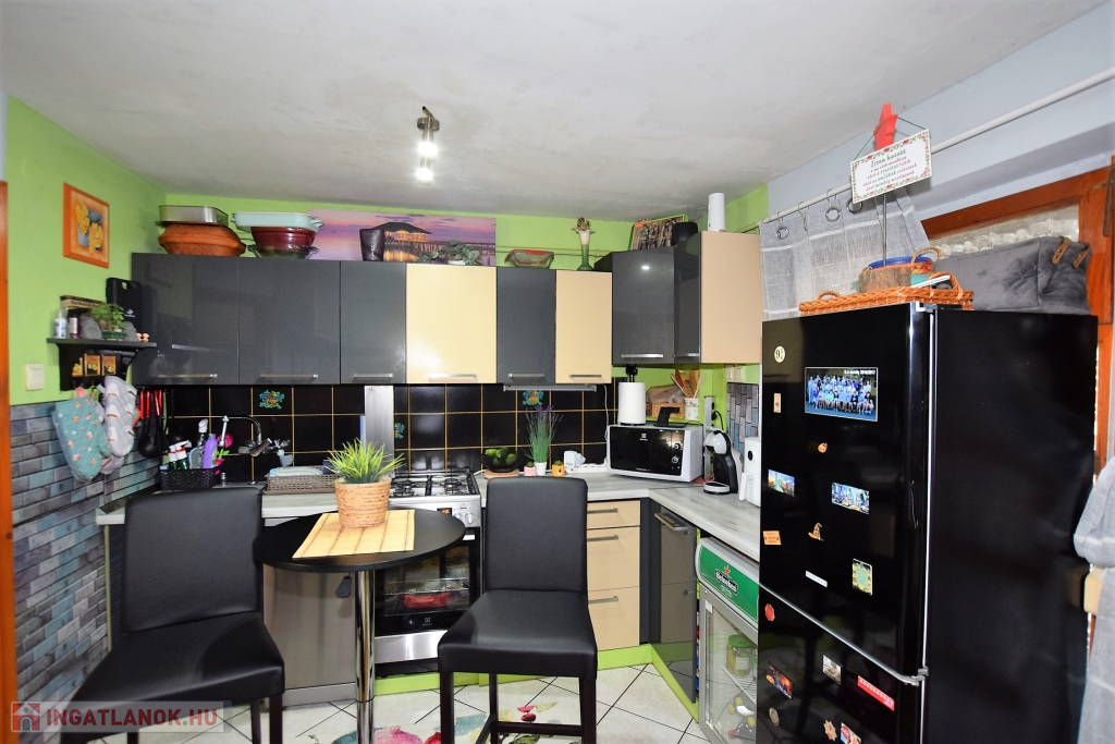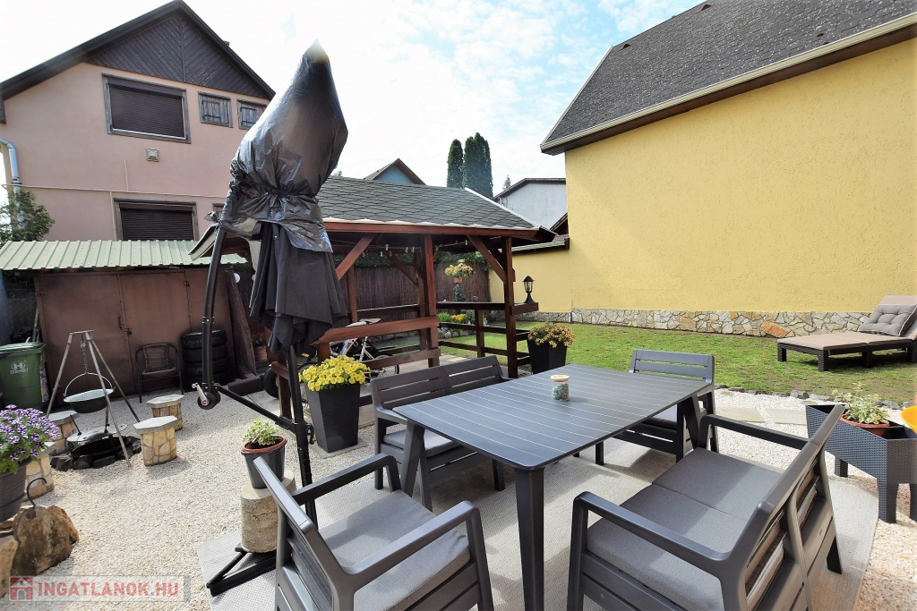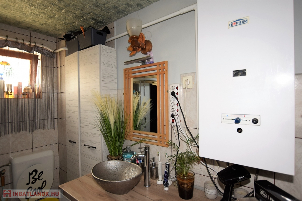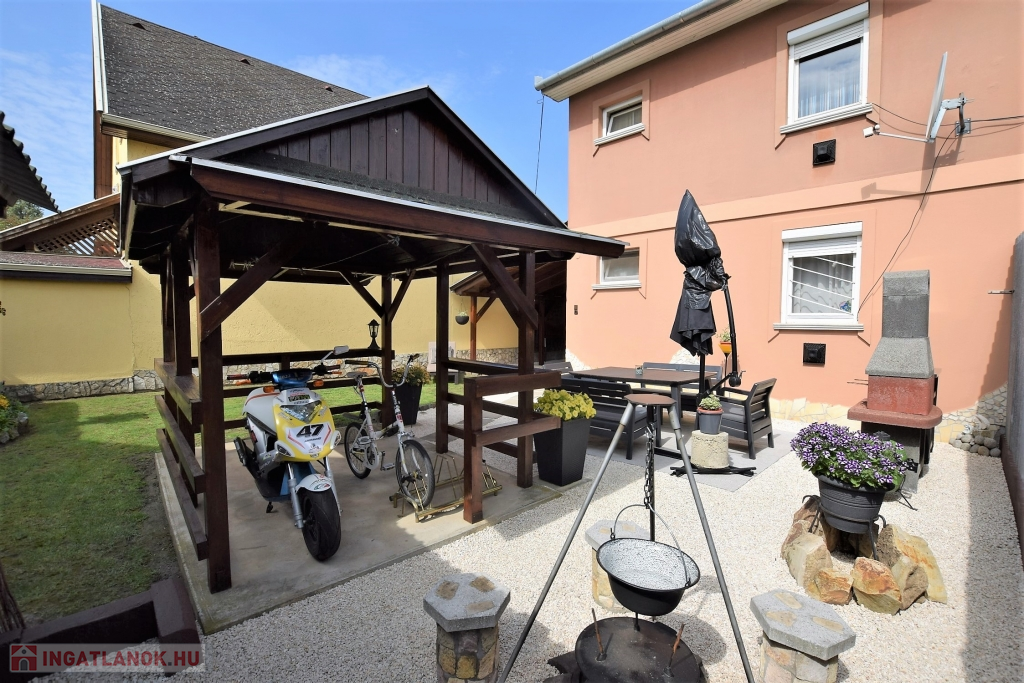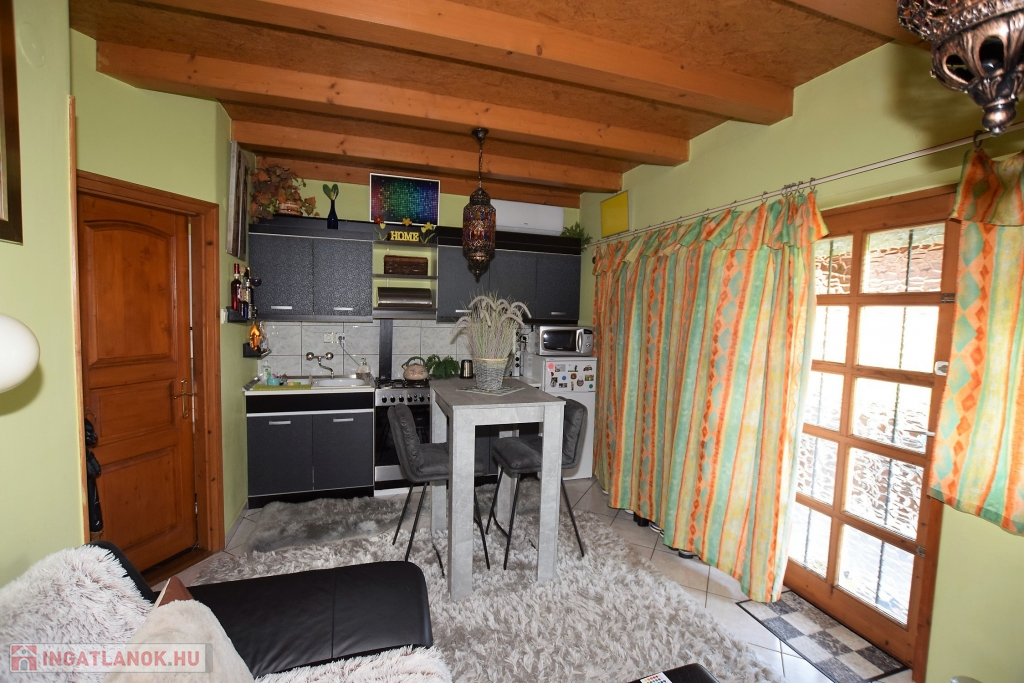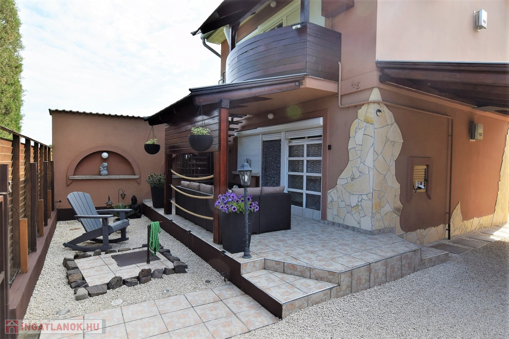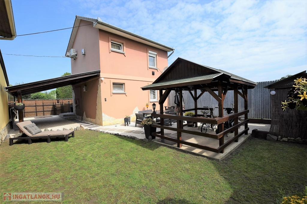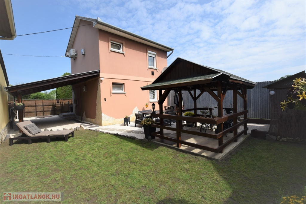 Hajdúszoboszló csendes utcájában a fürdő közelében ( 5 perc séta) ELADÓ egy 200 nm-es telken fekvő 88 nm alapterületű kétszintes (szintenként 44 nm) téglaépítésű nyaraló ház. Az ingatlan szintenként megosztott közművekkel, és bejárattal rendelkezik, mindkét szint nappali, konyha-étkező, hálószoba, fürdőszoba, fedett terasz, részekből áll, az udvaron fedett autó beálló, filagória, szalonnasütő található. Fűtése konvektorral, és hűtő-fűtő klímával, meleg víz ellátása gázkazánnal történik. Jelenleg kétgenerációs házként van használatban, de adottságaiból kifolyólag befektetésre, üdültetésre remek választás lehet.