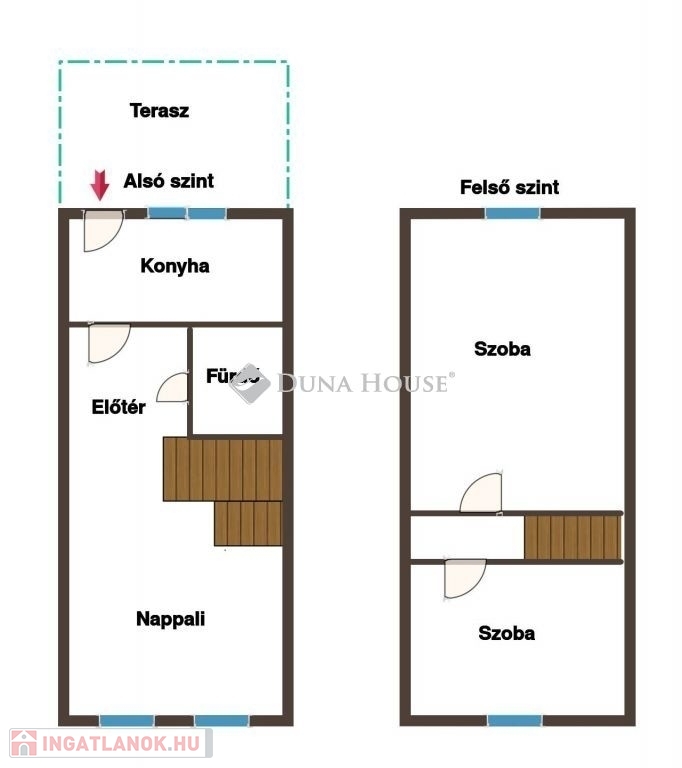 ~ az alsó szinten - nappali, konyha, fürdőszoba, előtér, lépcsőtér ~ a felső szinten