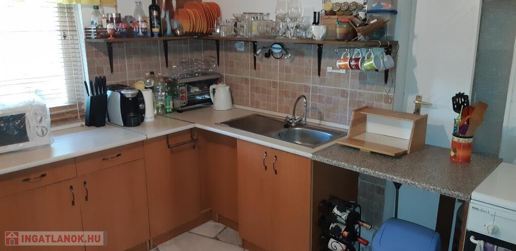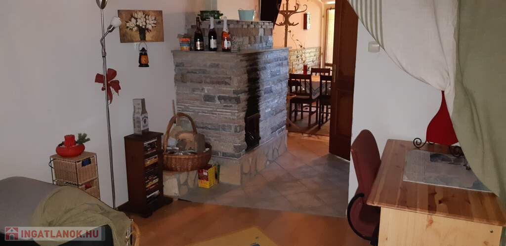 A hatékony, és a külföldiek által is nagyon kedvelt igali gyógyfürdő közelében, attól 10 perc sétára kínáljuk megvételre ezt a remek adottságú házat. Jelenlegi elosztása szerint ikerház, de természetesen egybe nyitható. A telek elejének enyhe emelkedését kihasználva kialakítottak két garázst utcafronti kapukkal, ez a legalsó szint. Fölötte, kívül megközelíthető két oldalról a két lakórész, mindkettőbe hátul, a terasz felől vezet a bejárat. A két lakrész nagyjából egyforma. A földszinten találjuk az étkezős konyhát, a nappalit, valamint fürdőt és tárolót. A tetőtérbe a nappaliból vezet kényelmes falépcső, fent kis közlekedőből nyílik két hálószoba, és még egy fürdő. Összesen 128 m2-en van négy szoba, két félszoba, két konyha, négy fürdő, két tároló, plusz két elkülönülő, fedett terasz. Az egyik lakásban épített kandalló és elektromos fűtő panelek teszik lehetővé hűvösebb időben is a kikapcsolódást, vagy akár az állandó, életvitelszerű tartózkodást. A telek 672 m2-es, hátul egyenes, füves, fákkal tarkított. Mind az épület, mind a kert karbantartott, barátságos, hangulatos.