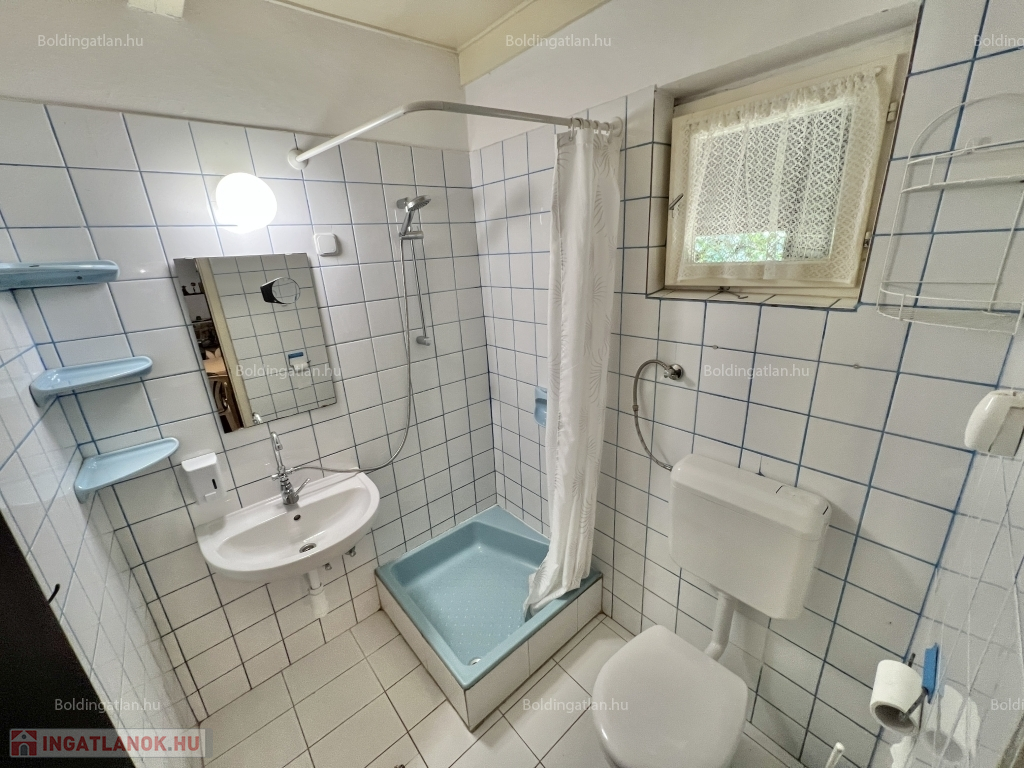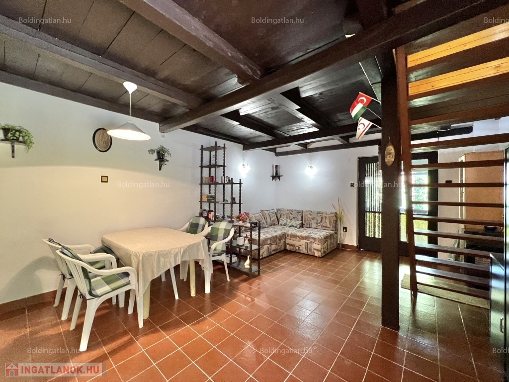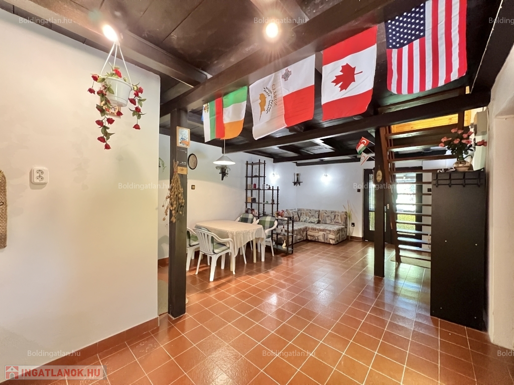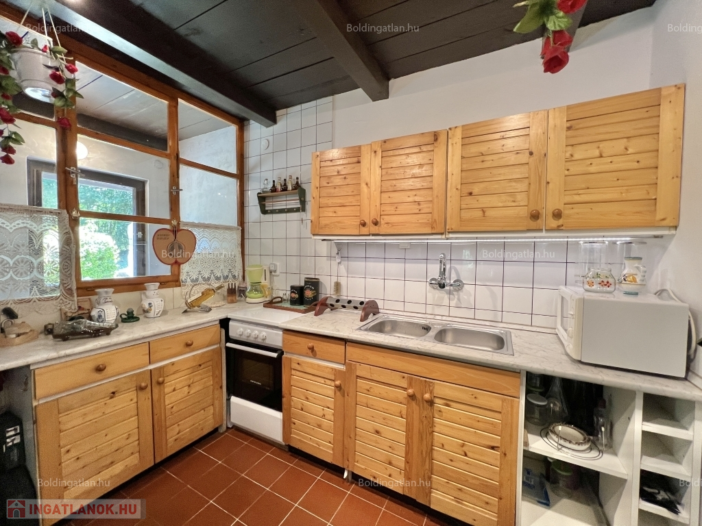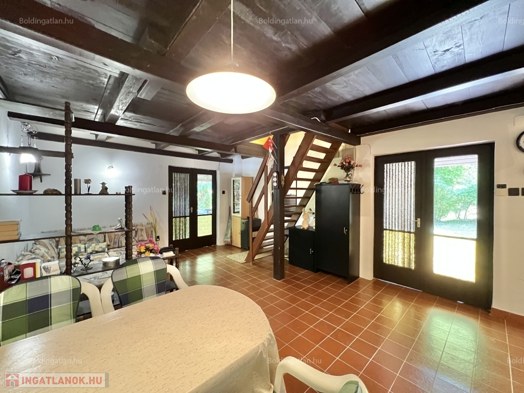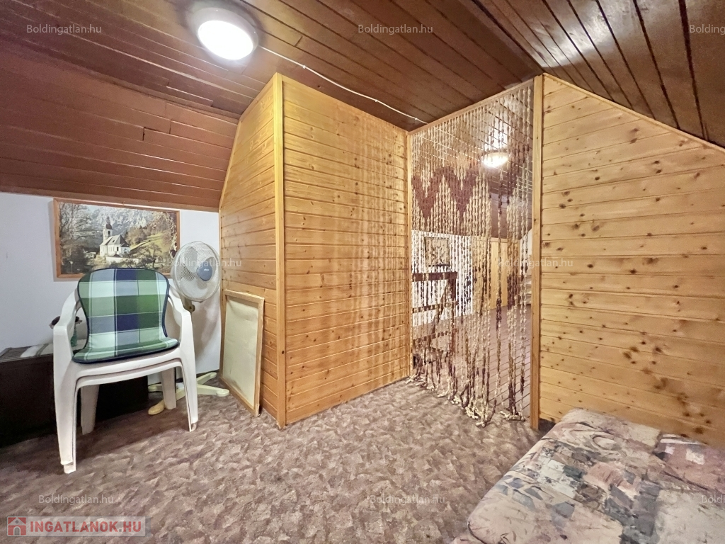Kaposváron a Deseda tó közelében - a toponári oldalon - jó állapotú, akár gyorsan birtokba vehető, hangulatos hétvégi ház, gondozott udvarral eladó. Az épület alsó szintjén tágas nappali - konyha-étkező, fürdőszoba-wc helyiségek, illetve fedett udvar felé néző terasz találhatóak, a tetőtérben egy nagyobb szoba és egy félszoba kerültek kialakításra. A vízellátás vezetékes vízzel és kútból is megoldott, a meleg vizet villanybojler biztosítja, továbbá derítő is van. Telek: 820 m2