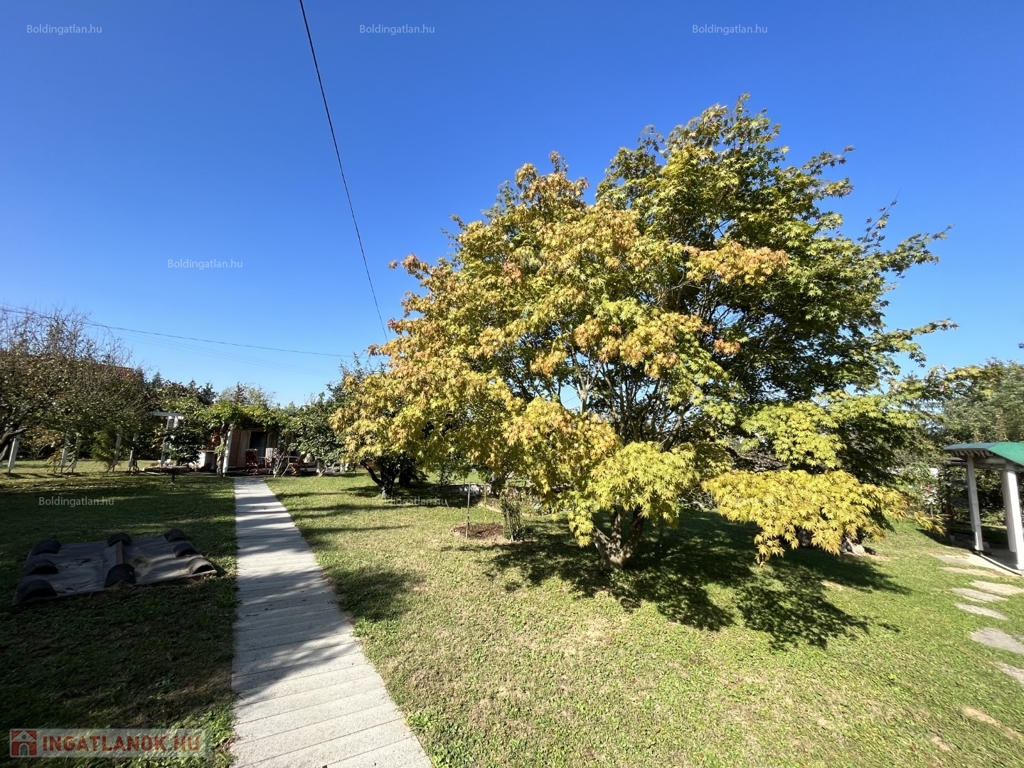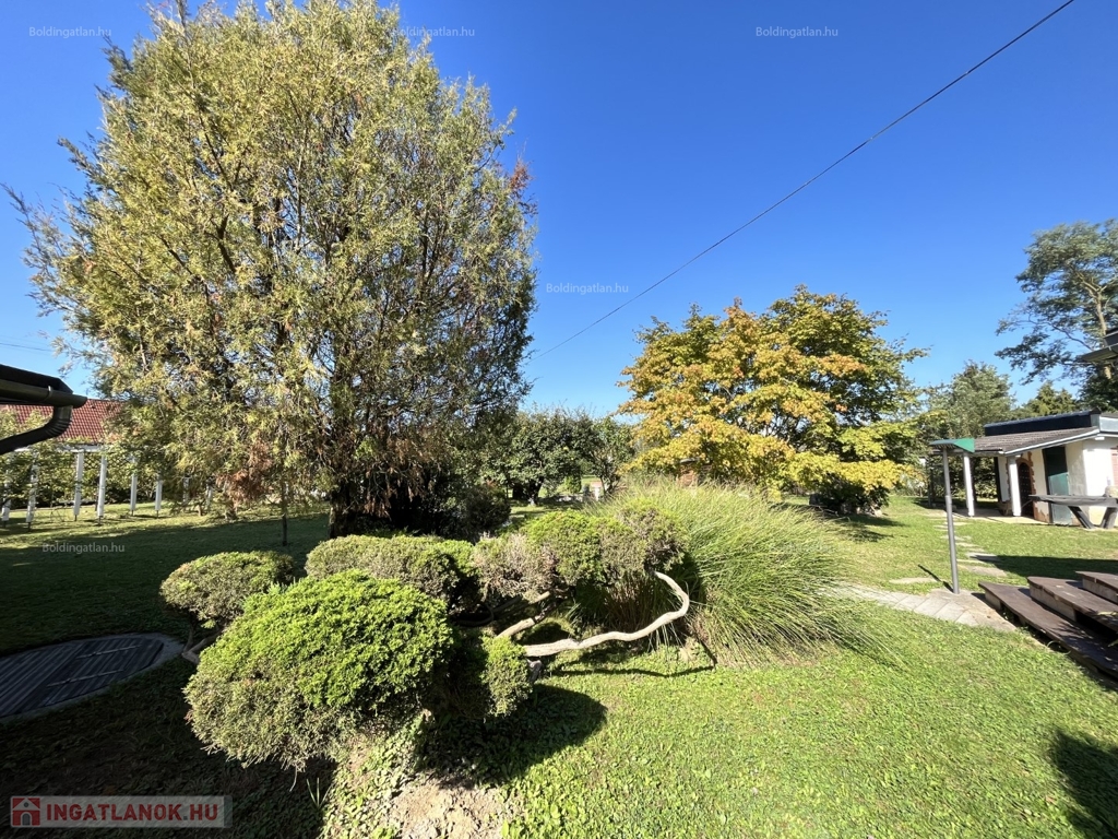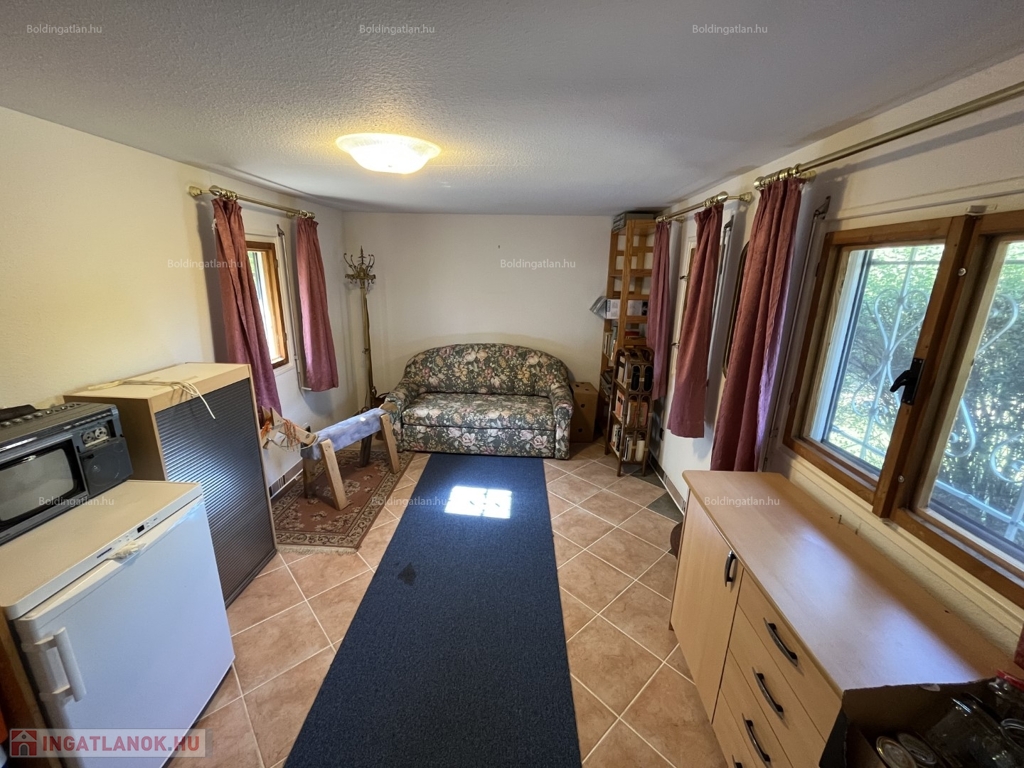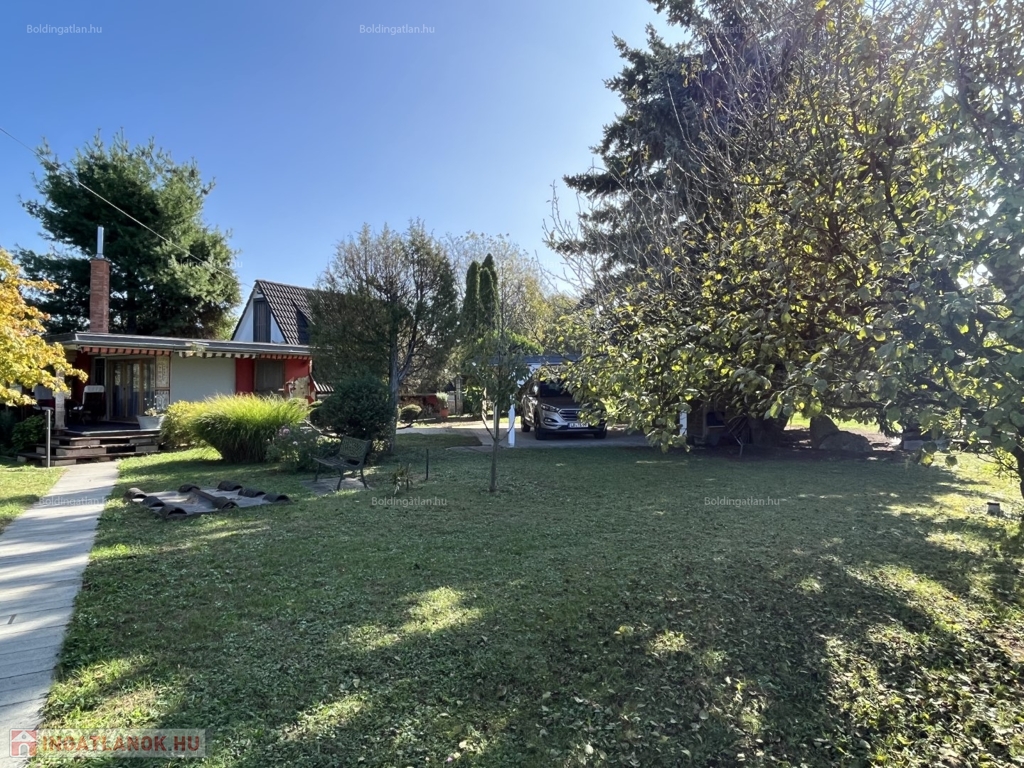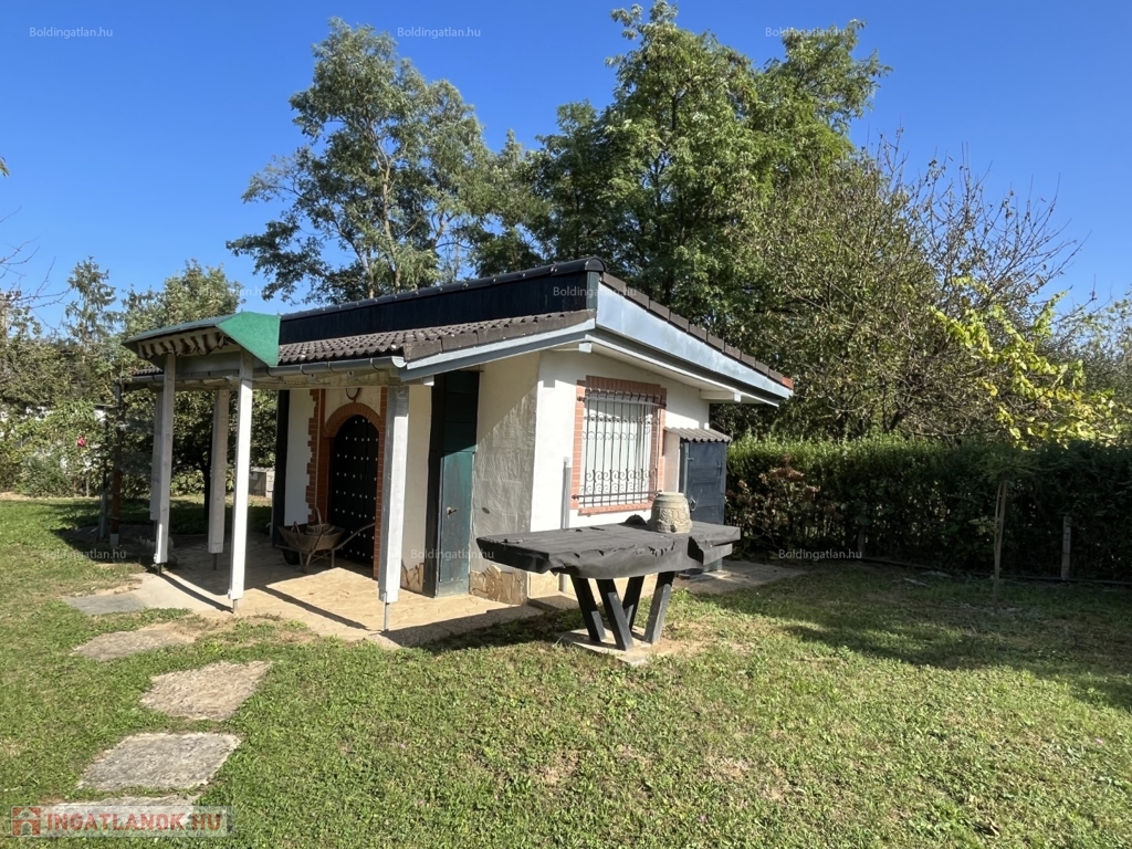 Kaposváron a Deseda tó közelében található, csendes környezetben - télen is lakható - 61 m2-es hétvégi ház, fedett terasszal, grill terasszal, melléképülettel és kis vendégházzal, hangulatosan kialakított udvarral eladó. A nyaralóban tágas étkező-konyha, kamra, nappali, fürdőszoba-wc, téli kert és egy 12 m2-es fedett terasz található a földszinten, a tetőtérben 2 hálószoba kerültek kialakításra - az épület fűtése az étkezőben lévő kandallóval megoldott. Az udvarban található még egy 5,2 m2-es nyári konyha, udvari zuhanyzóval és wc-vel, illetve egy kis grillterasszal, innen vezet egy lugas a kútházhoz, illetve a 12,5 m2-es vendégházhoz. A vendégházban lényegében 1 szoba található, illetve egy kis előtér, melyből lehet lejutni az alatta lévő pincébe. Az udvaron van még egy 12 m2-es műhely, illetve egy kis dísztó, valamint 42 m2-es fedett beálló az autó részére, továbbá számos gyümölcsfa és növény van. Telek: 2.275 m2 (425)