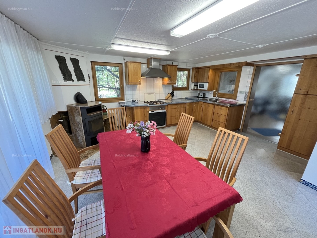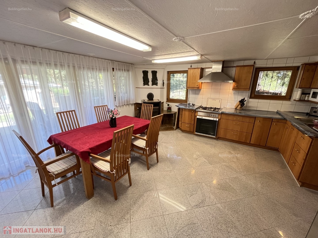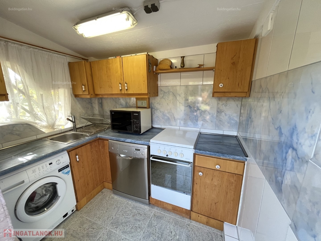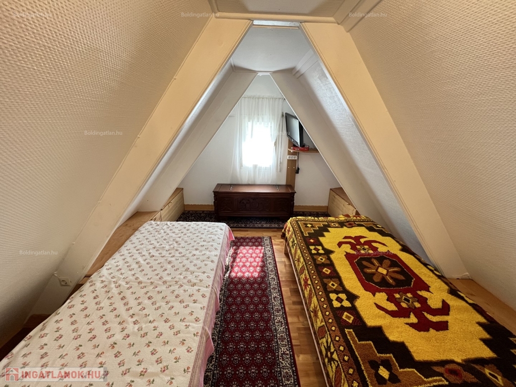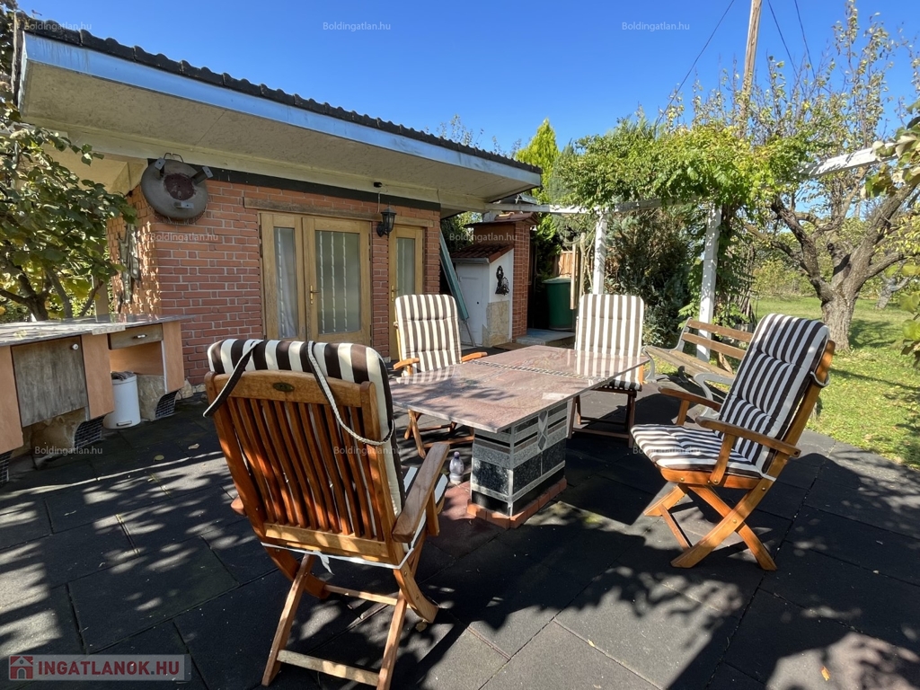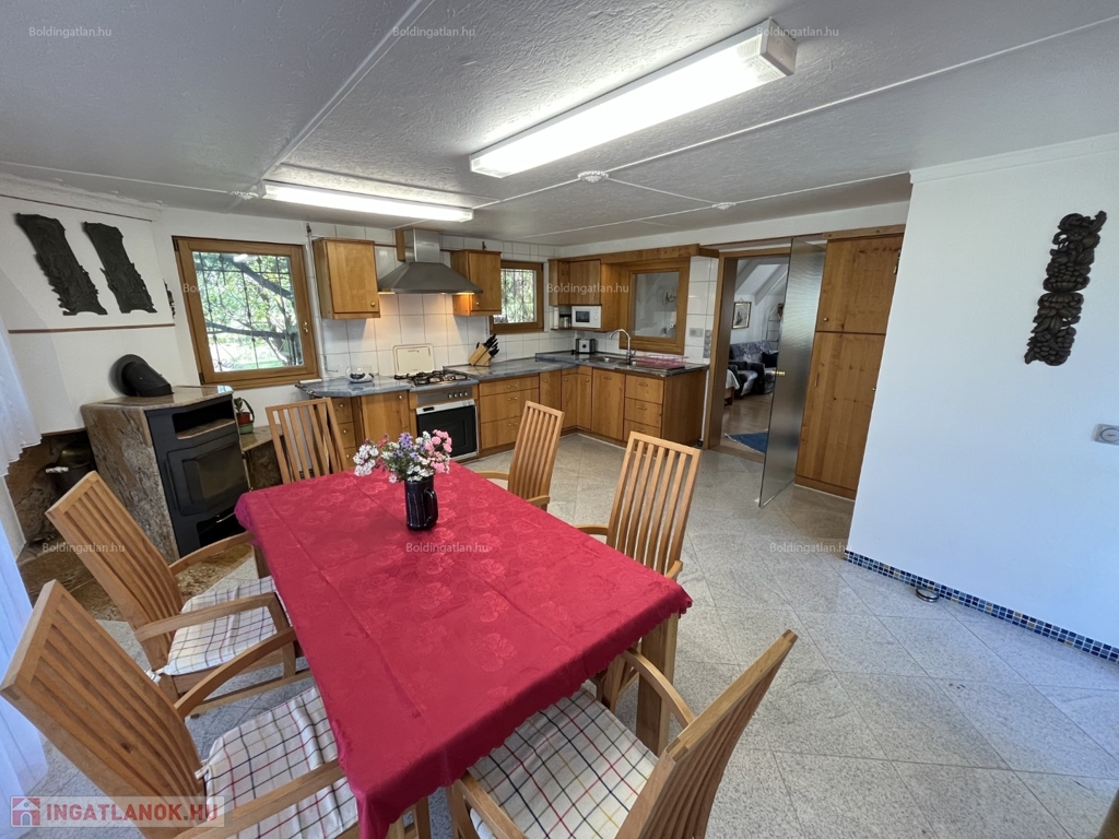 Kaposváron a Deseda tó közelében található, csendes környezetben - télen is lakható - 61 m2-es hétvégi ház, fedett terasszal, grill terasszal, melléképülettel és kis vendégházzal, hangulatosan kialakított udvarral eladó. A nyaralóban tágas étkező-konyha, kamra, nappali, fürdőszoba-wc, téli kert és egy 12 m2-es fedett terasz található a földszinten, a tetőtérben 2 hálószoba kerültek kialakításra - az épület fűtése az étkezőben lévő kandallóval megoldott. Az udvarban található még egy 5,2 m2-es nyári konyha, udvari zuhanyzóval és wc-vel, illetve egy kis grillterasszal, innen vezet egy lugas a kútházhoz, illetve a 12,5 m2-es vendégházhoz. A vendégházban lényegében 1 szoba található, illetve egy kis előtér, melyből lehet lejutni az alatta lévő pincébe. Az udvaron van még egy 12 m2-es műhely, illetve egy kis dísztó, valamint 42 m2-es fedett beálló az autó részére, továbbá számos gyümölcsfa és növény van. Telek: 2.275 m2 (425)