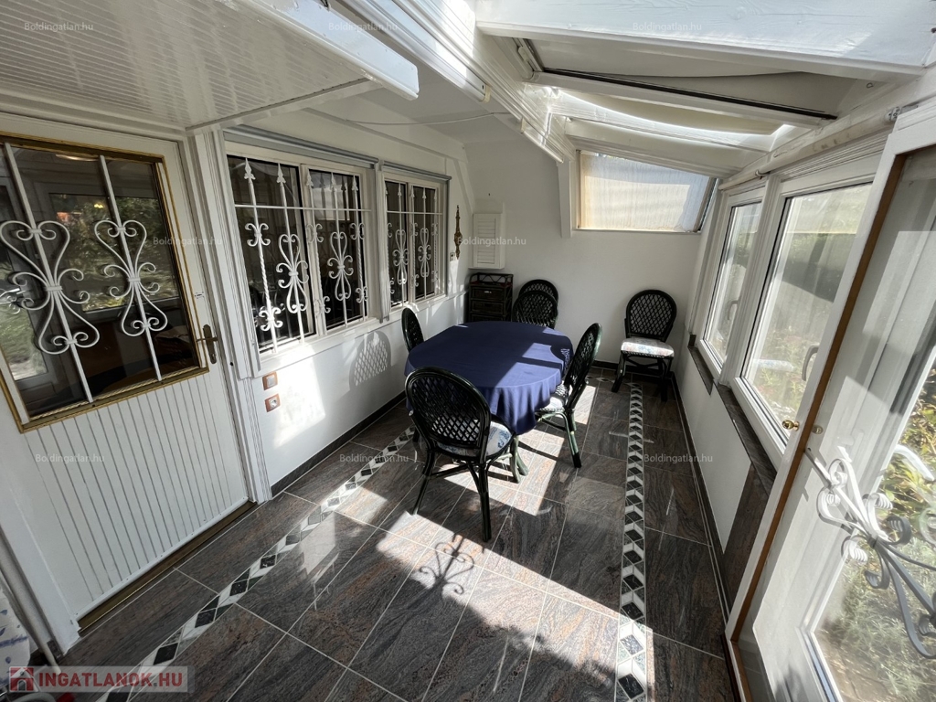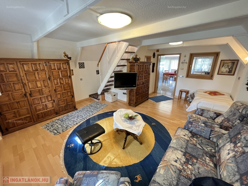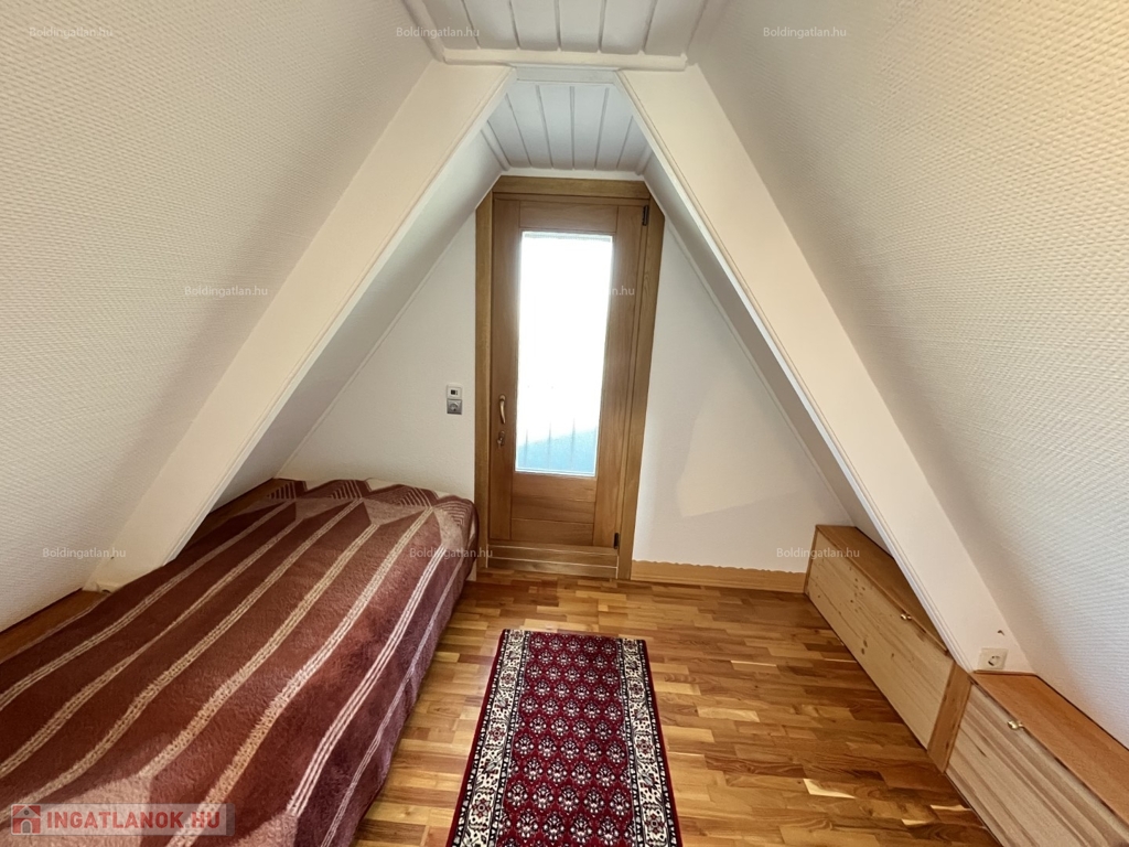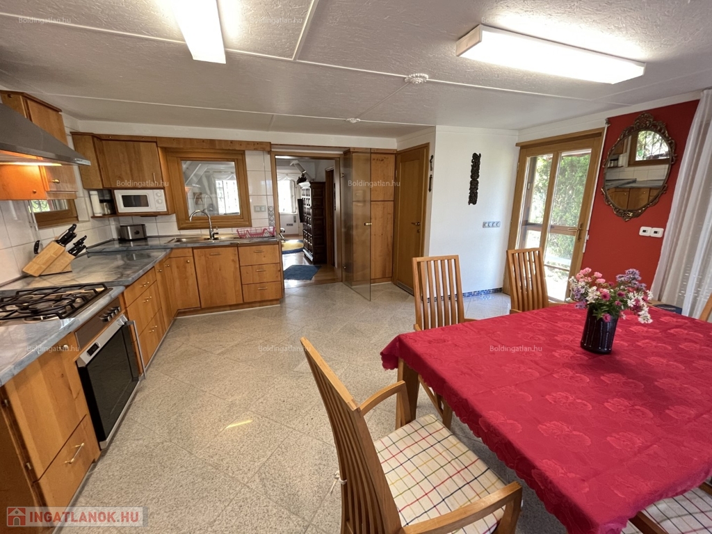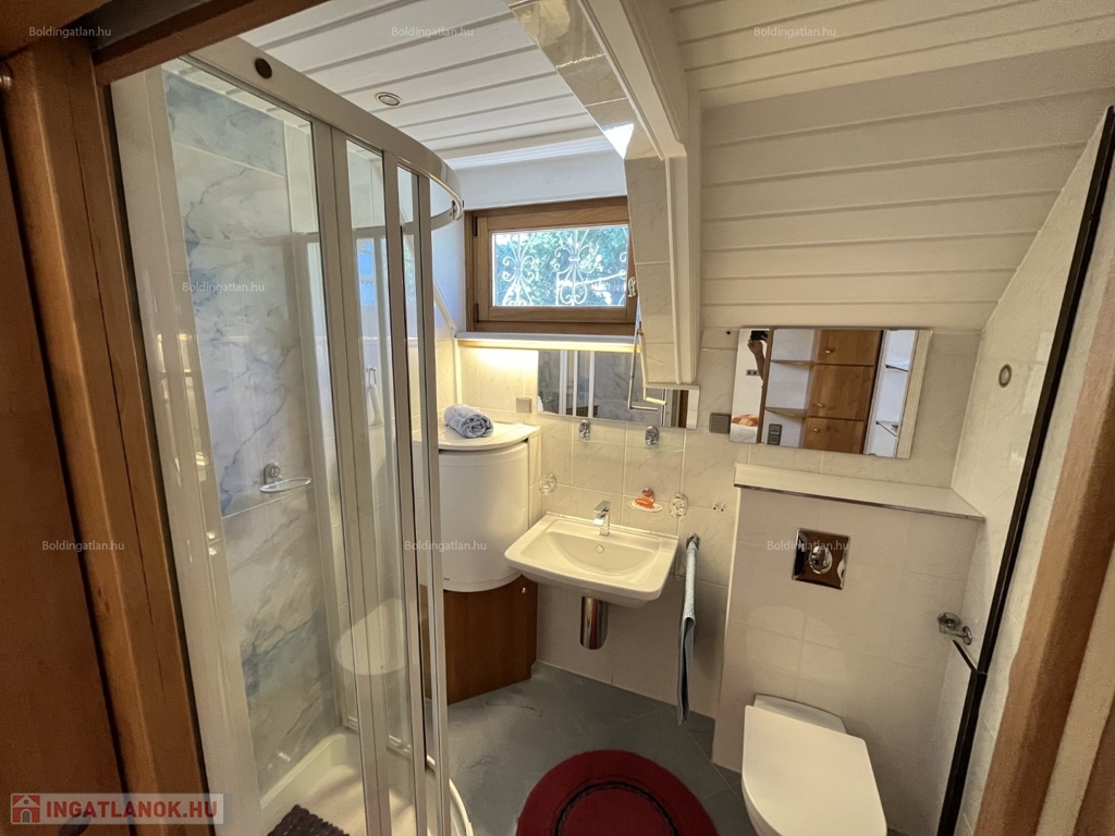 Kaposváron a Deseda tó közelében található, csendes környezetben - télen is lakható - 61 m2-es hétvégi ház, fedett terasszal, grill terasszal, melléképülettel és kis vendégházzal, hangulatosan kialakított udvarral eladó. A nyaralóban tágas étkező-konyha, kamra, nappali, fürdőszoba-wc, téli kert és egy 12 m2-es fedett terasz található a földszinten, a tetőtérben 2 hálószoba kerültek kialakításra - az épület fűtése az étkezőben lévő kandallóval megoldott. Az udvarban található még egy 5,2 m2-es nyári konyha, udvari zuhanyzóval és wc-vel, illetve egy kis grillterasszal, innen vezet egy lugas a kútházhoz, illetve a 12,5 m2-es vendégházhoz. A vendégházban lényegében 1 szoba található, illetve egy kis előtér, melyből lehet lejutni az alatta lévő pincébe. Az udvaron van még egy 12 m2-es műhely, illetve egy kis dísztó, valamint 42 m2-es fedett beálló az autó részére, továbbá számos gyümölcsfa és növény van. Telek: 2.275 m2 (425)