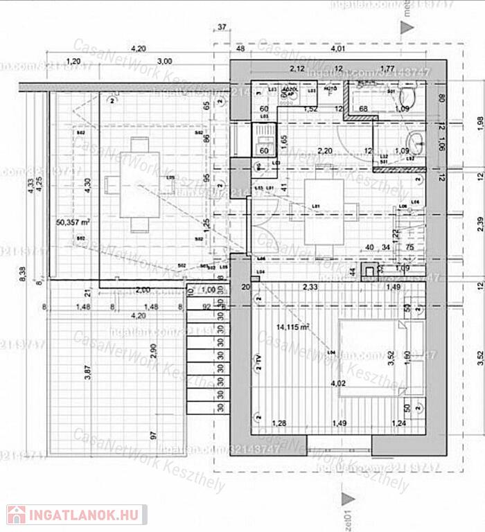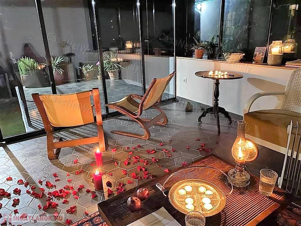 A két szint összesen 96m2 (ebből 16 m2 a nyitott terasszal teljesen összenyitható télikert, és 32m2 pince, (ahová egyébként szauna lett tervezve), és szintén 16m2 a nyitott terasz. A házhoz 2785m2-es telek tartozik, rajta szőlő, gyümölcsfák.