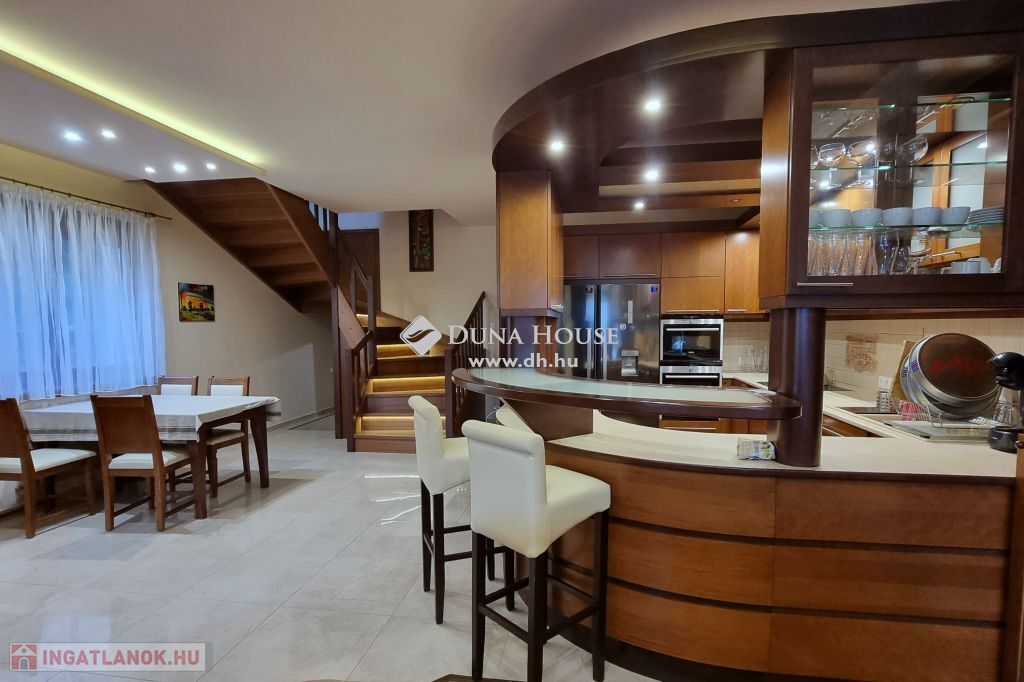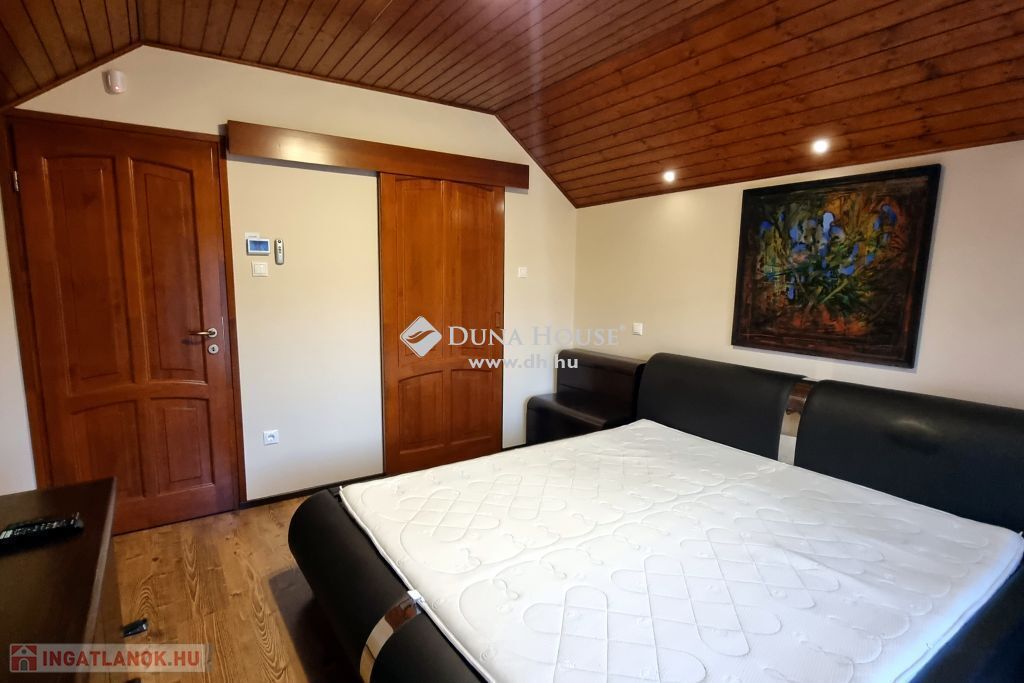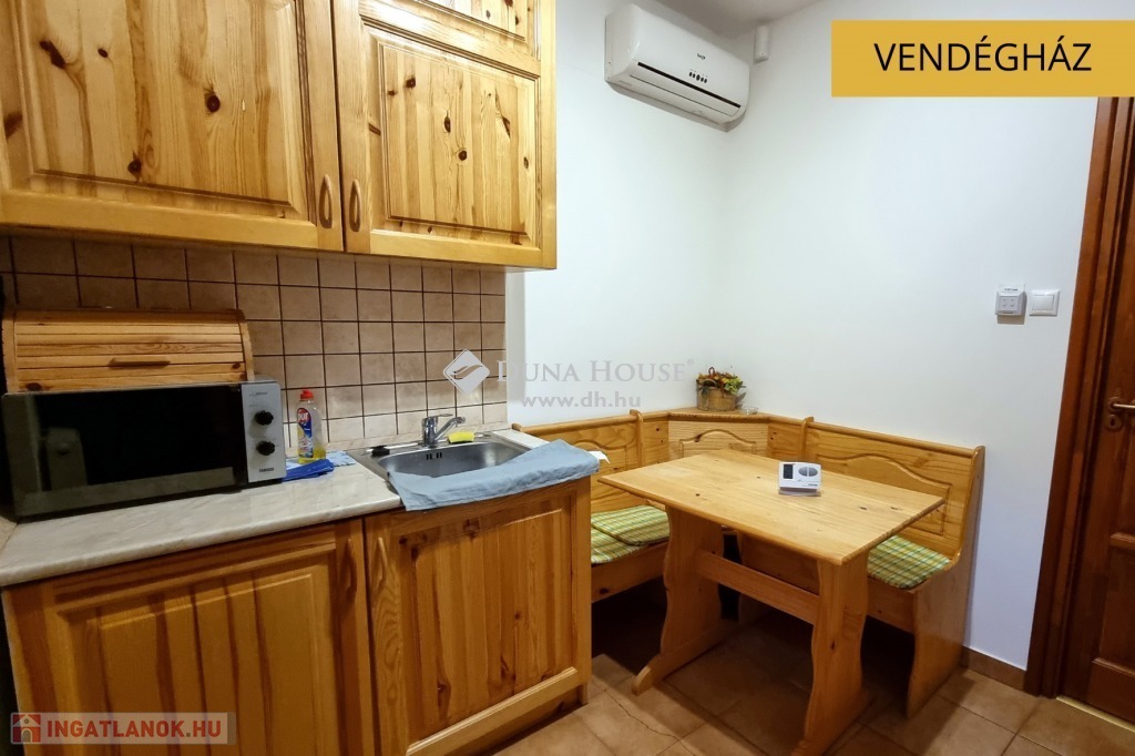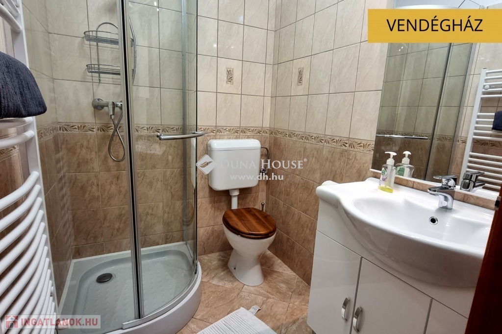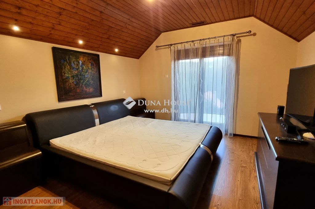 Ön is álmodozott már róla, hogy csendes, erdős környezetben, vízparton töltse a mindennapjait?Ez a ház tényleg a mesékből lépett ki! Komló-Sikonda tópartjánál kínálom megvételre ezt a leírhatatlanul hangulatos, káprázatosan szép környéken lévő családi házat és a hozzá tartozó kisebb vendégházat.A házat 2008-ban építették, majd 2018-ban teljes felújításon esett át. Az ablakok elektromos redőnnyel ellátottak, a helyiségekben egyedi hőfok szabályozó rendszer van és klímával felszereltek. Az amúgy is napfényes házban minden helyiség led világítással ellátott, amik külön bekötésüknek köszönhetően csodás hangulatvilágítást varázsolnak. Az ingatlanban riasztórendszer van kiépítve, és 3 széf is található. A kényelem érdekében a porszívó beépített, így könnyen használható bármelyik szobában cipekedés nélkül. A 3,5 szintes otthon a kifogástalan, beépített bútorzattal, extra és modern felszereltségével minden szükségletet kielégít: Egy szint a barátoknak: A legalsó szinten egy garázson át érkezünk a házba, ahonnan a hangulatos közösségi térbe jutunk, gyönyörű borospincével, és egy külön fürdőszobás wellness helyiséggel (szauna, jacuzzi) Két szint a családnak: A földszinten (ami akár a garázsból, akár az udvarból is megközelíthető) a hatalmas, egylégterű étkező-konyha-nappali fogad minket. A konyha gépesített, minden háztartási cikkel felszerelt. Ezen a szinten még egy dolgozószoba és egy fürdőszoba vár ránk. Egy emelettel feljebb találjuk a 3 hálószobát, valamint a különálló fürdőt és illemhelyiséget. A szobák mindegyike óriási beépített szekrényekkel vagy gardróbbal ellátott, így bőven jut hely a ruháknak is. A tó felé néző szobának erkélyéről pedig csodás látványban lehet részünk nap, mint nap.Egy fél szint az elvonulni vágyóknak: Az emeletről egy csigalépcsőn át egy kicsike toronyszobába érkezünk, ami mind a 4 falán ablakokkal van ellátva, hogy a tó és az erdő minden napszakának minden pillanatával ámulatba ejtsen minket. A helyiség kiválóan alkalmas szivarszobának is a mennyezetbe beépített szagelszívóknak köszönhetően.Egy udvar a természetbe vágyóknak: A ház bejáratánál már rögtön egy nagy nyitott terasz vár ránk, azonban ha hátramegyünk a kertbe, akkor egy erdő által körülölelt, fedett, hatalmas teraszra érkezünk, kemencével, grillel. A 600 nm-es udvaron belül egy kapun át a vendégházhoz jutunk, aminek intim, hangulatos kertjében a pavilonban ülve várhatjuk, hogy a legfinomabb falatok a bográcsban elkészüljenek.Egy ház a vendégek számára: A kis házban egy konyha, egy fürdőszoba és 2 szoba található, amikből egy fedett teraszra lehet kiülni. A ház alsó szintjében is van egy garázs tárolókkal, valamint egy fedett autóbeálló.A 2 ingatlan külön is megközelíthető, az utcafrontról mindkettőbe 1-1 elektromos kapun át jutunk. A házak előtt még bőven van hely még több autó számára is. A házakban a berendezés marad, így a képeken látható teljes egészében vásárolható meg. Kifejezetten ajánlom családok számára, akik egy tökéletes otthonra vágynak a várostól elvonultan, de mégis közel. A vízpartot és a természetet kedvelőknek is egy kihagyhatatlan lehetőség, hiszen a tó kb. 1,5 perc sétára található a háztól. Az ingatlan az adottságainak köszönhetően kiváló befektetés, a turisták és kirándulók kedvenc vendégháza lenne a környéken! És még berendeznie sem kell! Keressen bátran, nézzük meg együtt új otthonát! Az ingatlan cég tulajdonában áll, az ár 158.000.000 Ft + ÁFA, azaz bruttó 200.000.000 Ft!
